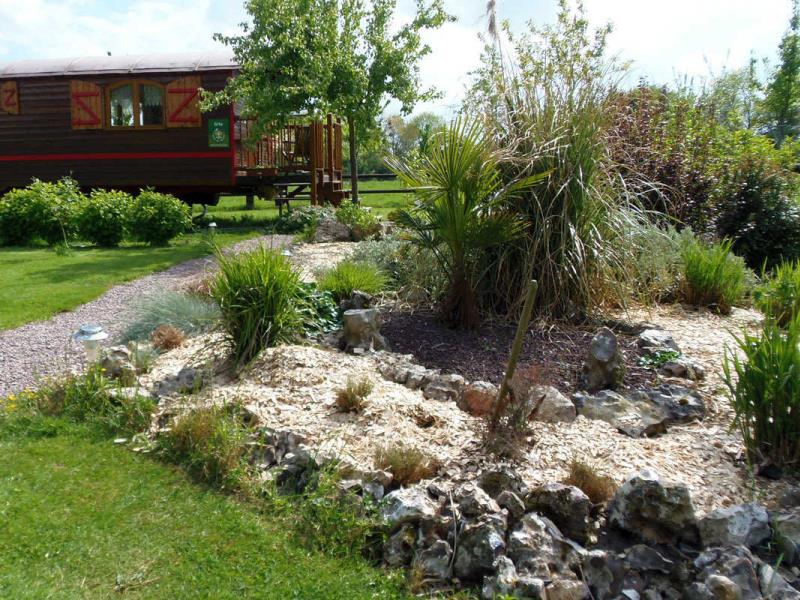 Bien qu'elle soit fixe, cette roulotte vous mettra d'humeur vagabonde. Réalisée tout en bois, elle offre confort et originalité jusque dans les moindres détails. Elle dispose d'une belle terrasse, d'un jardin privatif non clos d'environ 300 m² et d'un mobilier extérieur confortable. Idéale pour votre week end amoureux ou jouer les aventuriers! Vous pouvez également en profiter 1 nuit sur demande, en fonction de la période (90€ la nuit).