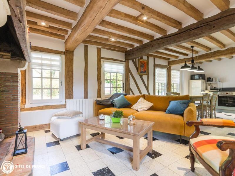 Vous êtes ici au coeur de paysages superbes et bien normands, tout en relief, entre petites vallées secrètes et villages adorables aux maisons traditionnelles. Bailleul la Vallée en est un, avec en son coeur une de ses plus anciennes maisons, véritable chaumière à colombages qui accueille ce gîte, l'Abbesse, du nom du ruisseau voisin. Christelle et Philippe en ont fait un cocon chaleureux où l'on se sent bien. On adore la pièce de vie lumineuse sous ses poutres anciennes avec une cuisine prête pour vos recettes préférées et un salon douillet à souhait près de la cheminée, les chambres élégantes à la literie au top, un espace détente supplémentaire sur le palier qui permet de s'isoler, et 2 belles salles d'eau en travertin. Si Christelle a peaufiné déco et détails, Philippe a mis sa patte de menuisier en créant de jolis meubles. Tout autour, un environnement superbe, à commencer par un jardin soigné dont une partie toute à vous, et plein d'espace pour profiter du grand air !