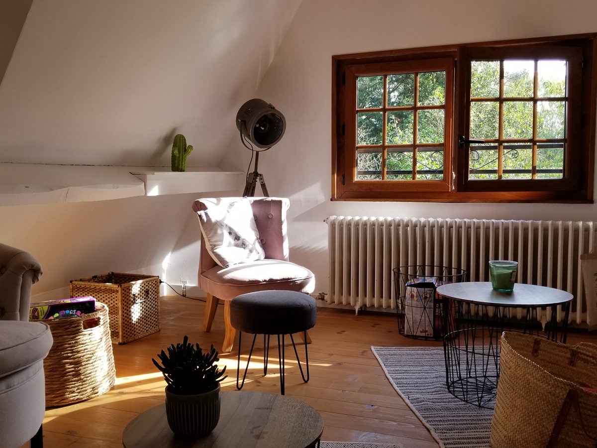 Vous rêviez de vacances dans une vraie chaumière ? Celle-ci vous comblera ! Audrey et Grégory ont eu à coeur de faire de cette grande maison un cocon chaleureux, dans l'air du temps et vraiment pensé pour vos vacances. Le gîte est confortable et spacieux : il vous offre 2 salons dont l'un est idéal pour un moment de détente ou de jeux (les enfants l'adopteront !) et l'autre convivial près du poêle à bois. Autre point fort, le grand jardin arboré sera une pièce à part entière où chacun trouvera son petit coin et son activité préférée, entre les jeux autour du portique ou du ping-pong, et bien d'autres, un repas en tribu à l'ombre des arbres, ou une petite sieste à l'écart. Vous êtes ici au bord d'un village, presque au bord de l'Iton qui serpente dans cette superbe vallée et en contrebas de la forêt : que d'invitations à la balade ou à une vraie randonnée pour les sportifs : le GR222 passe juste devant. Evreux, avec tous ses loisirs, commerces sympathiques et services est à deux pas.