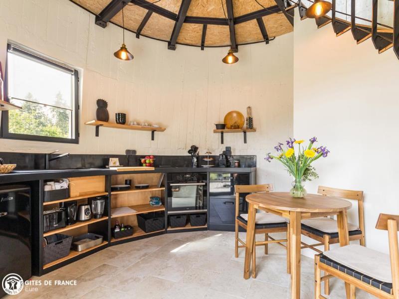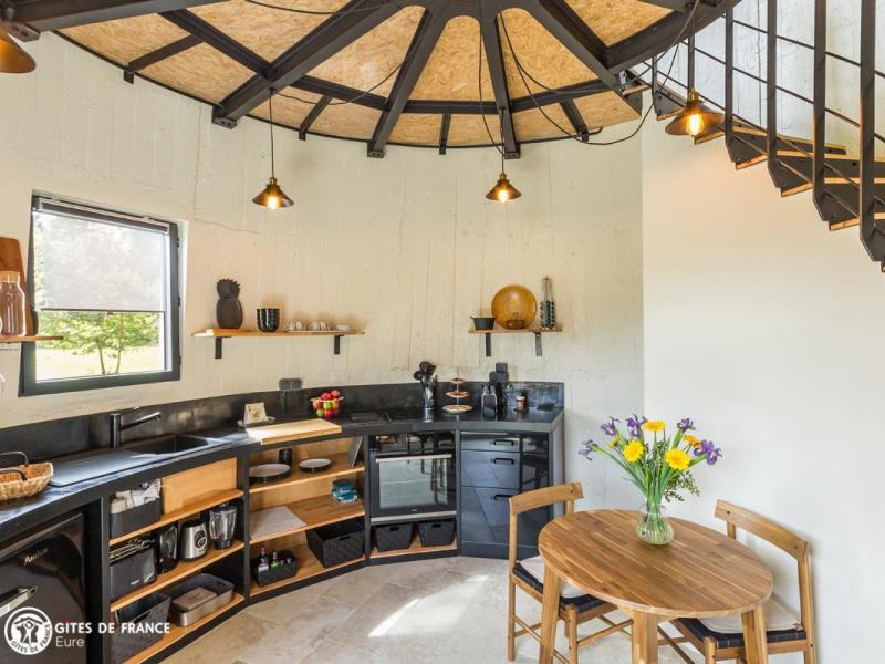 Offrez vous un séjour sous les étoiles, proche de la cime des arbres en coeur de forêt ! Un voyage insolite que vous propose cet ancien château d'eau converti en une maison de vacances atypique et chaleureuse, toute habillée de bois et de fer. Côté confort rien n'est laissé au hasard, Cloé et Laurent ont pensé à tout pour que votre étape ici soit des plus agréables malgré les contraintes de cette bâtisse incroyable. Le gîte est aménagé comme un grand loft sur 5 niveaux, jusqu'à la chambre panoramique, tout en haut. Chaque espace est bien pensé, cocoon, dans une ambiance contemporaine vraiment chaleureuse, avec les petits plus de Chloé, toujours aux petits soins. Côté jardin, un espace rien que pour vous autour du gîte, avec votre mobilier de détente, et accès à l'ensemble du domaine dont une partie en forêt parfaite pour les petites balades ou observer la faune sauvage. Cette région entre vallée de la Seine et Vexin Normand est superbe, à commencer par Giverny, à 4 km.