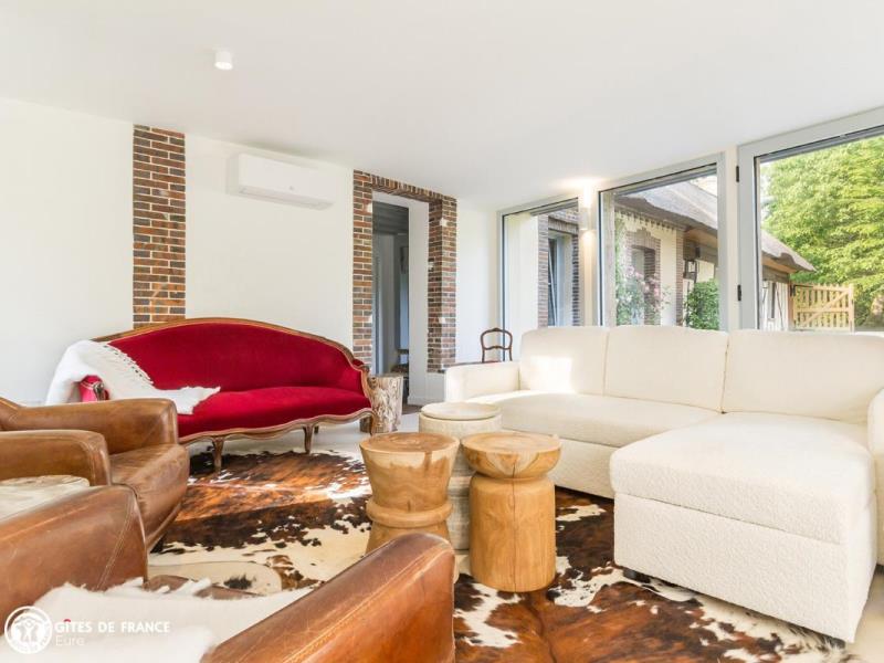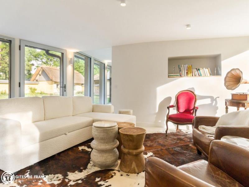 Niché au coeur de la campagne normande, le Clos des Fauvettes est un de ces lieux d'exception que l'on aime se garder secret. Dans un hameau à l'environnement bucolique, cette belle propriété réunit l'exigence d'une maison de vacances de grande qualité à l'esprit convivial et chaleureux d'une authentique chaumière. Le décor : sur un hectare tout à vous, un clos d'adorables chaumières anciennes retravaillées autour de matériaux contemporains entre verre et zinc pour un superbe résultat. Dès l'entrée vous découvrez l'atmosphère intimiste et raffinée : tomettes, cheminée ancienne, meubles et objets de déco de famille ou design, matières nobles et naturelles, vaisselle signée, étoffes douillettes sont mis en scène dans des espaces généreux avec un vrai souci de votre confort. La piscine, l'espace repas sous la pergola, les nombreux jeux et espaces au jardin, le babyfoot, les petites attentions de Marie complètent ce tableau de rêve. A vous de concevoir votre programme !