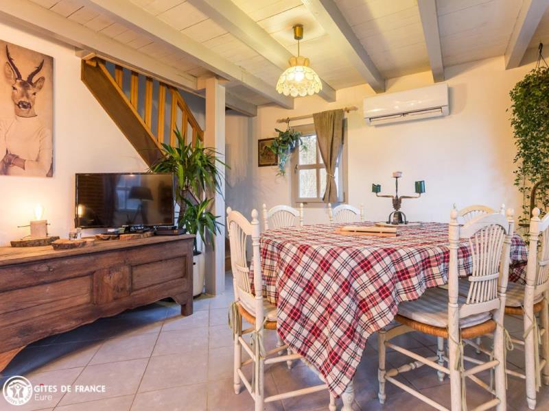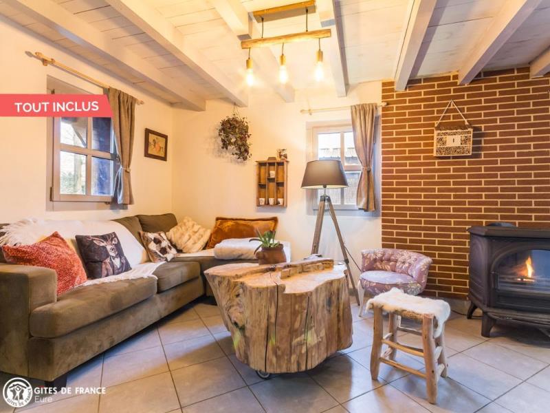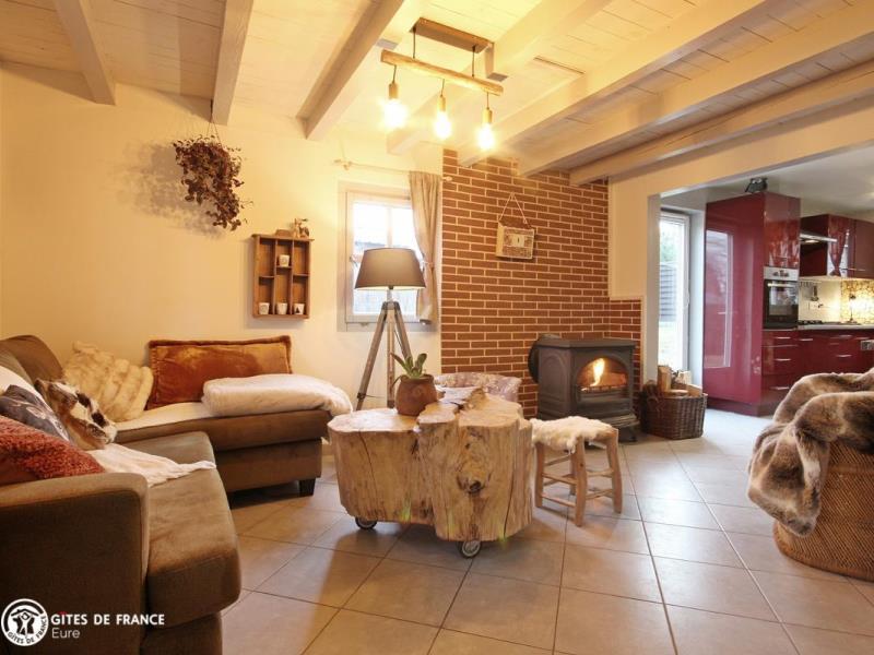 Entrée vallée d'Eure et vallée de Seine, dans une région aux jolis paysages vallonnés, le Désiré vous propose un changement d'ambiance sympathique avec ses allures de chalet montagnard. Cécile l'a aussi aménagé et décoré dans cet esprit très chaleureux : poêle à bois, salon cocoon aux couvertures douillettes, meubles en bois brut chinés ou créés "maison", lumières indirectes pour l'atmosphère feutrée et objets de déco rigolos. Côté confort, tout est là et bien pensé pour que vous vous y sentiez bien, de l'équipement de la cuisine pour se faire de bons petits plats, aux très bonnes literies, et même une baignoire pour la détente. Le jardin est tout à vous, en lisière de forêt et face aux champs, avec de l'espace pour se dégourdir les jambes et le mobilier pour profiter des belles journées. La région vous offre plein de lieux superbes à découvrir : Château Renaissance à Gaillon ou médiéval aux Andelys, panoramas sur la Seine ou l'Eure... Vous trouverez tous les commerces à 5 km.