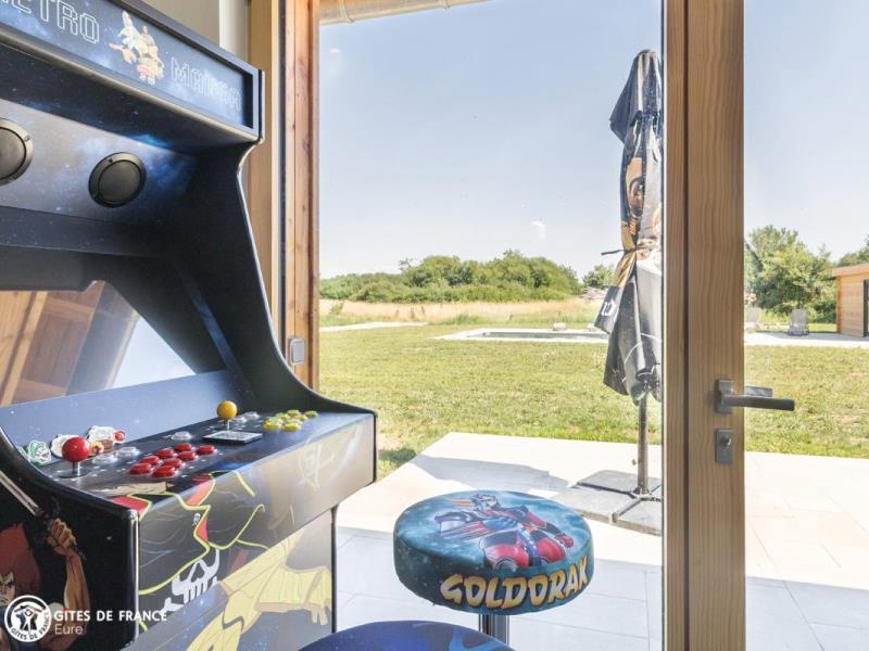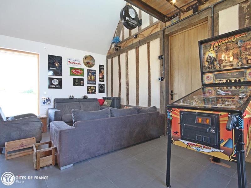 Le Domaine de Marbois est un lieu de vacances incroyable, entièrement conçu pour la détente et les loisirs. Au milieu des champs, cette ancienne grange à colombages a été restaurée dans un esprit contemporain en lui conservant toute son âme : beaux matériaux d'origine conservés, logique écologique et démarche durable avec des artisans locaux. L'ensemble est vraiment spacieux, tant à l'intérieur qu'à l'extérieur avec un vaste jardin tout à vous. Benjamin a voulu ce gîte très confortable, dans une ambiance bien-être et ludique. Chacun y trouvera son activité favorite : détente autour de la piscine ou du bain nordique, dans les salons cosy près du bar ou de la cheminée, ou sur l'original filet-mezzanine, et jeux pour de bons moments de partage : jeux de société (une vraie ludothèque !), flipper et jeux d'arcade, consoles de jeux et jeux pour le jardin. Côté balades, plein de petits chemins tout autour, un GR à moins de 4 km et de belles découvertes touristiques comme Verneuil ou Conches.