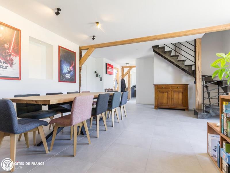 Le Domaine de Marbois est un lieu de vacances incroyable, entièrement conçu pour la détente et les loisirs. Au milieu des champs, cette ancienne grange à colombages a été restaurée dans un esprit contemporain en lui conservant toute son âme : beaux matériaux d'origine conservés, logique écologique et démarche durable avec des artisans locaux. L'ensemble est vraiment spacieux, tant à l'intérieur qu'à l'extérieur avec un vaste jardin tout à vous. Benjamin a voulu ce gîte très confortable, dans une ambiance bien-être et ludique. Chacun y trouvera son activité favorite : détente autour de la piscine, dans les salons cosy près du bar ou de la cheminée, ou sur l'original filet-mezzanine, et jeux pour de bons moments de partage : jeux de société (une vraie ludothèque !), flipper et jeux d'arcade, consoles de jeux et jeux pour le jardin. Côté balades, plein de petits chemins tout autour, un GR à moins de 4 km et de belles découvertes touristiques comme Verneuil ou Conches.