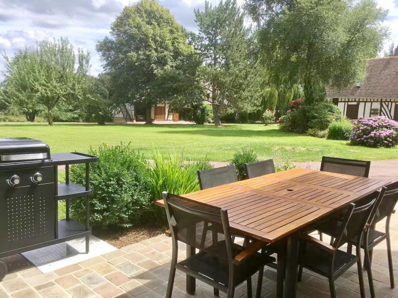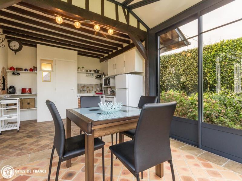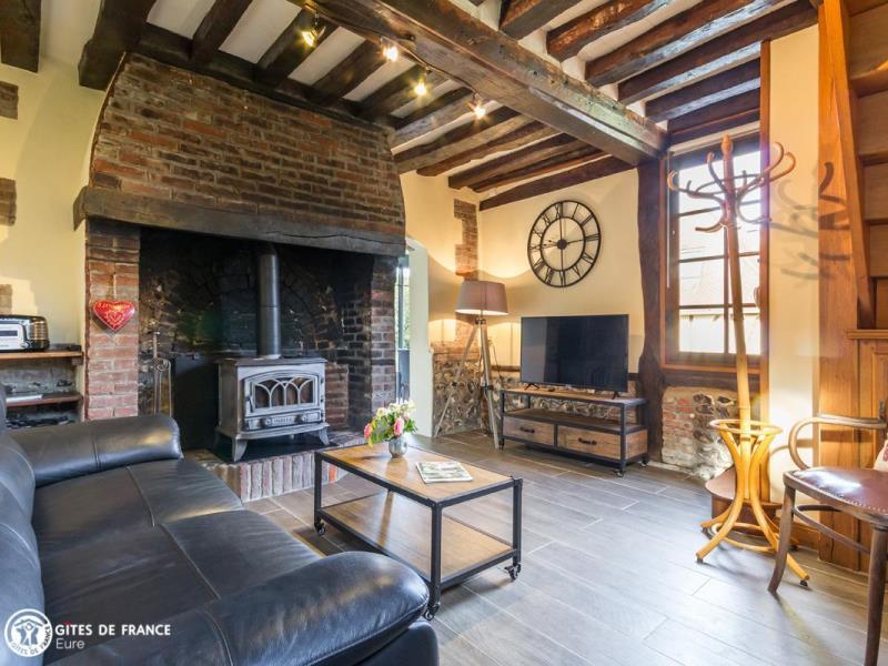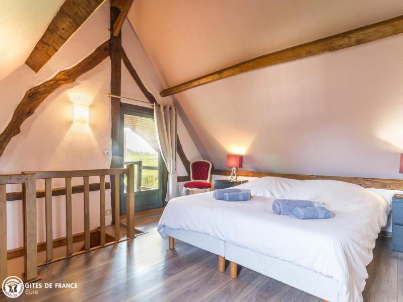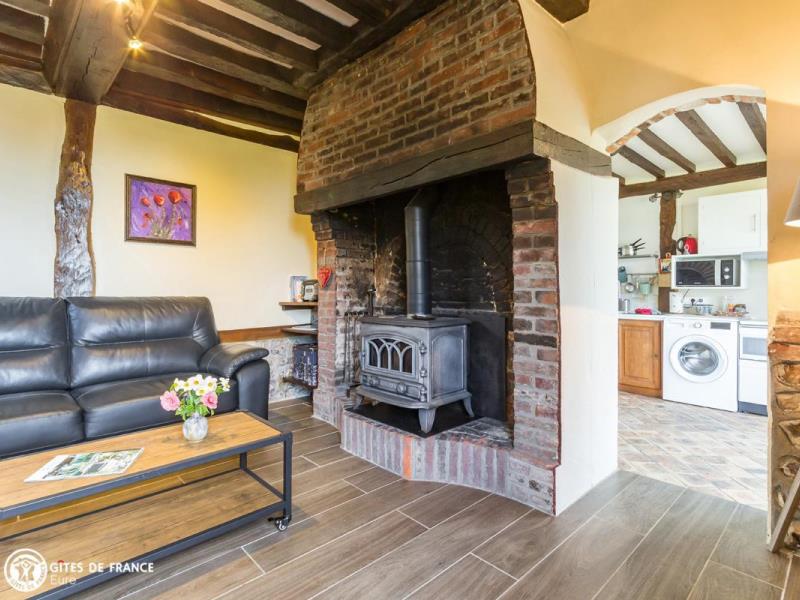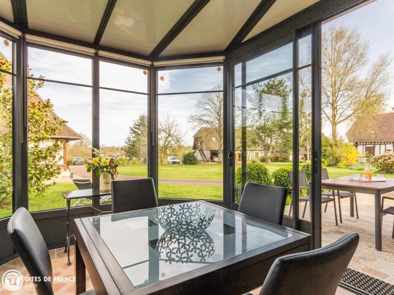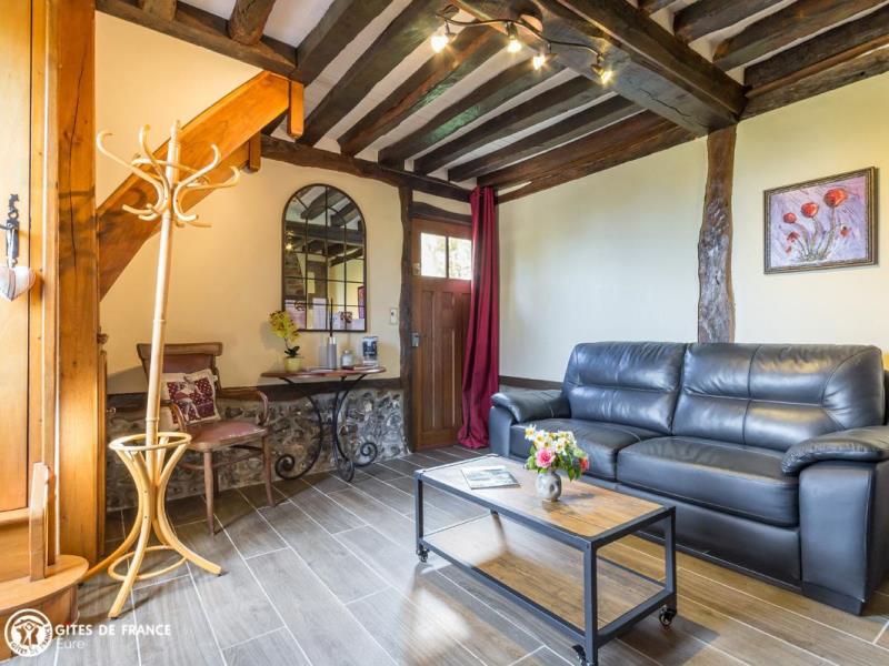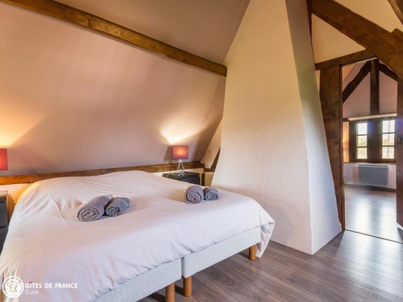 De jolies petites routes de campagne vous mèneront face à un élégant porche. Dès le portail franchi, vous serez dans l'ambiance de ce petit paradis : une vaste propriété close de 3 hectares, ancien corps de ferme aux beaux bâtiments à colombages sur un jardin paysagé ; un véritable écrin où l'on se sent tout de suite chez soi. Dans un coin, l'ancien four à pain transformé en une petite maison de vacances adorable ! Vous y trouverez tout le charme et le caractère que l'on aime avec cheminée, tomettes et poutres, portes anciennes, et même ses chambres mansardées, charmantes bien qu'en enfilade. Micheline a intégré des touches contemporaines vraiment appréciables, comme cette superbe véranda qui donne l'impression de prendre ses repas au jardin toute l'année. Le résultat est tout simplement chaleureux, actuel et confortable. Côté loisirs, vous profiterez de cet espace incroyable où se promener, respirer et jouer, ou partirez vers les bords de Seine ou le Marais Vernier à moins de 10 km.