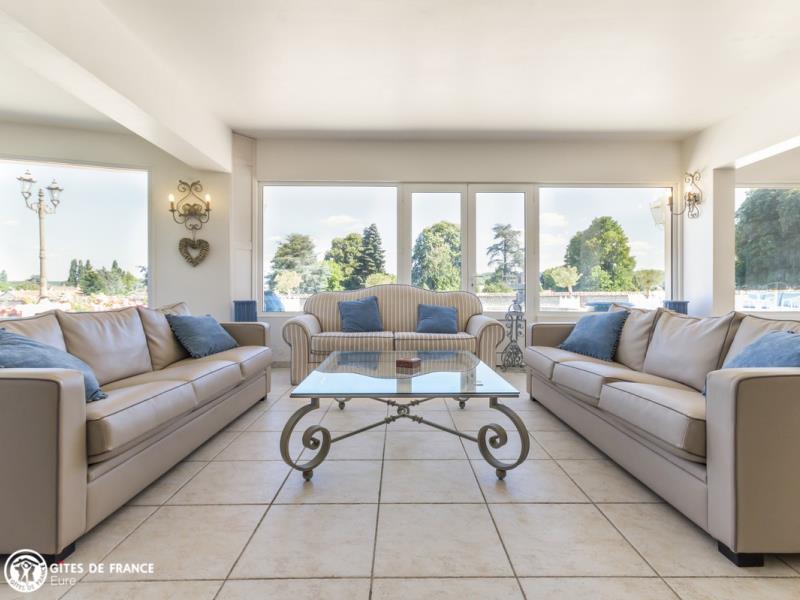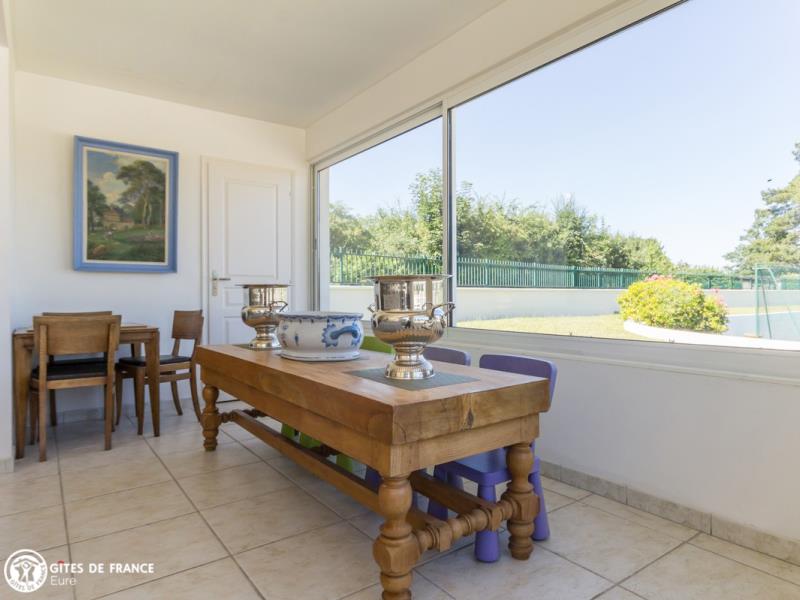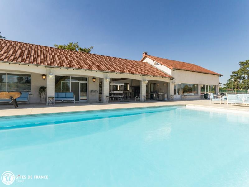 Dans l'un des méandres de la Seine, offrez vous ce petit paradis pour un séjour loin de tout ! Posez vos valises et profitez... cette superbe propriété est faite pour votre bien être, à vous et votre tribu : à l'extérieur, de vastes espaces de détente (plusieurs salons) autour de la piscine et du tennis, un joli jardin, de nombreux jeux (baby-foot, ping-pong, badminton...), et une magnifique salle à manger d'été qui est vraiment le cœur de ce lieu. Côté intérieur, une vaste et belle pièce de vie dont les larges baies vitrées vous donnent l'impression toute l'année d'être dehors, chaleureuse et très confortable avec cheminée pour une petite flambée, mais aussi 7 jolies chambres, une salle de fitness pour les plus courageux. Egalement de belles balades à faire dans les alentours, entre les Andelys, son château et ses bords de Seine, Giverny et ses musées, Gaillon et les étangs de Léry-Poses (base de loisirs et parc animalier). Espace SPA en supplément (voir avec la propriétaire).