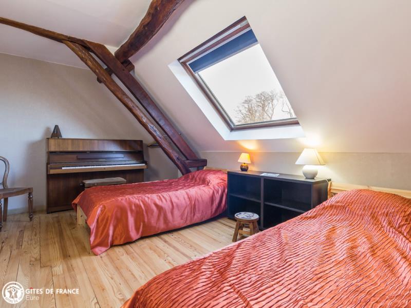 Au bord de l'Andelle, le gîte des 3 vallées est le lieu parfait où poser vos valises. Cet appartement mansardé est chaleureux, confortable et très bien équipé. Totalement indépendant grâce à son accès et sa terrasse rien qu'à vous, vous profiterez de jolies vues sur la vallée d'un côté et la Côte des 2 amants de l'autre. Côté loisirs, Martine et Jean-François ont tout prévu : un piano et plein de jeux de société pour les enfants à l'intérieur et côté jardin un portique avec toboggan, trampoline, table de ping-pong, pétanque, pêche dans la rivière et même une piscine chauffée aux beaux jours ; sans oublier un petit coucou aux poules, Bridget le cochon vietnamien et les chèvres ou tout simplement vous relaxer et profiter du jardin. Aux alentours, de nombreux trésors à découvrir comme le parc de loisirs de Léry Poses ou le parc animalier Biotropica. Pour les adresses à ne pas manquer, Martine et Jean-François vous guideront vers leurs coups de cœur.