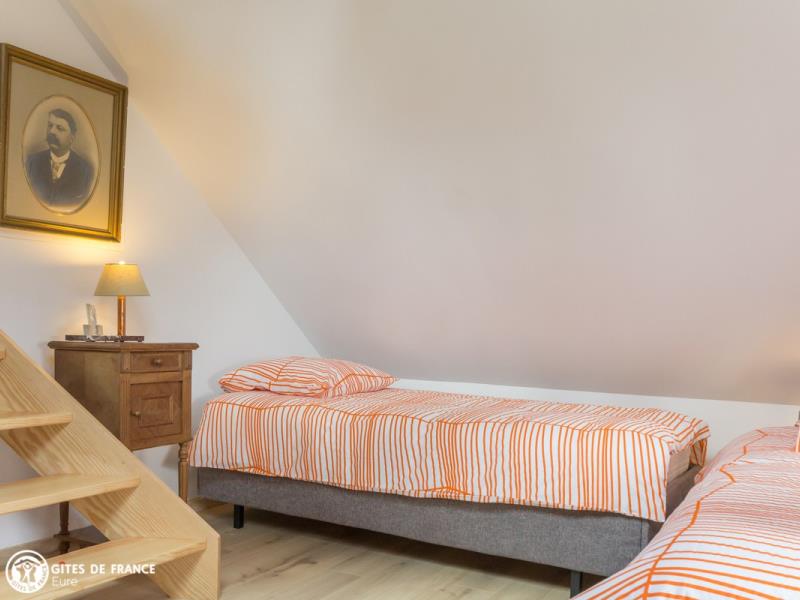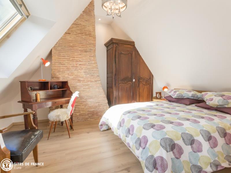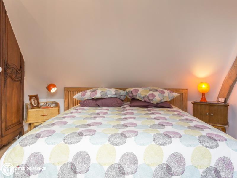 Cette jolie dépendance à pans de bois et volets rouges abrite aujourd'hui un gîte accueillant et plein de charme, en bordure du village et des champs. Sur une partie indépendante de sa propriété, Laurent a aménagé cette jolie maison de vacances : très confortable, chaleureuse par ses matériaux traditionnels (tomettes, poutres, colombages...). Rénovation traditionnelle avec matériaux écologiques (béton de chanvre et enduits intérieurs chaux/lin). Mise en service de climatisation réversible en 2024 pour plus de confort l'été et plus d'économies l'hiver.