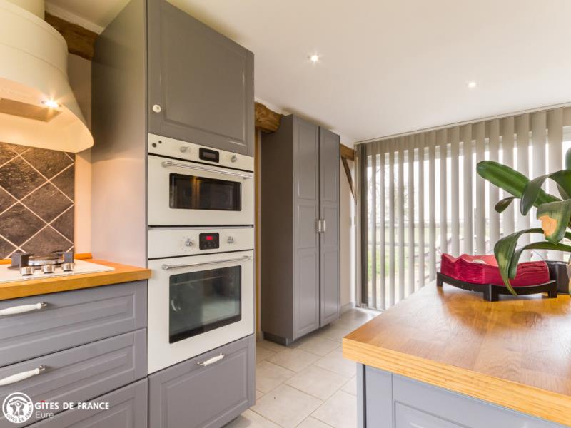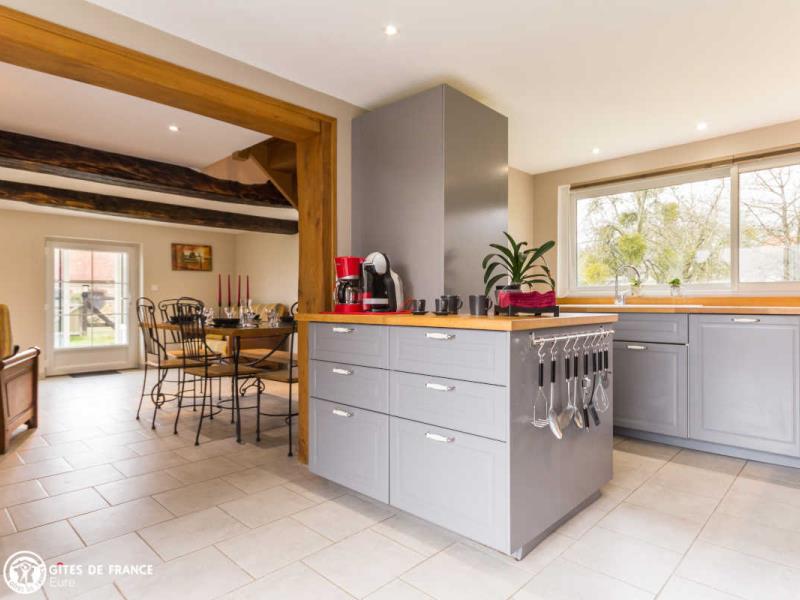 Une ravissante petite maison ancienne au milieu des prés où se baladent les chevaux, avec la campagne à perte de vue : voici le cadre de vos prochaines vacances tout simplement dépaysantes et ressourçantes. Rémi vous accueille sur son ranch dans une région charmante ponctuée de forêts, de rivières et de petits villages sympathiques. La maison est très jolie, actuelle et moderne dans son aménagement, décorée dans de teintes claires de beiges et gris, chaleureuse et confortable. Le gîte est indépendant, avec son jardin privatif, mais vous pourrez vous balader le long des herbages et rendre visite aux animaux : chevaux, âne, poneys, poules, canards, oies, faisans, paons, moutons et chèvres ! Rémi est également producteur de cidre et apiculteur ; il vous parlera avec plaisir de toutes ses passions, dont la cuisine. Vous aimerez les promenades alentours, au Bec Hellouin, un des plus beaux villages de France avec son abbaye, vers la vallée de la Risle ou au Château du Champ de Bataille.