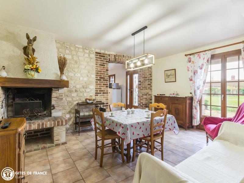 En bords de Seine, laquelle a tracé de nombreux méandres et reste une source d'inspiration inépuisable pour les artistes, cette maison en belle pierre blanche de pays vous attends pour un séjour des plus relaxants. Ce gîte à l'atmosphère champêtre est situé sur un ancien corps de ferme comme le rappellent les murs de brique et de pierre qui donnent son caractère à la pièce de vie. Son petit jardin sera l'endroit idéal pour lézarder au soleil et profiter des beaux jours, tout comme les embarcadère situés sur la Seine, où de petits bateaux viennent s'amarrer. La région est superbe, en plein cœur d'une zone Natura 2000 à la biodiversité préservée et aux somptueux panoramas sur la vallée et ses coteaux calcaires. Aux alentours, ne manquez pas la visite des Andelys et son château Gaillard ou bien les promenades le long du GR2, accessible à quelques kilomètres.