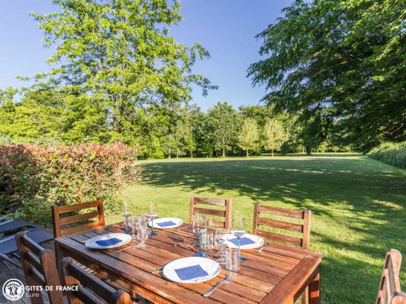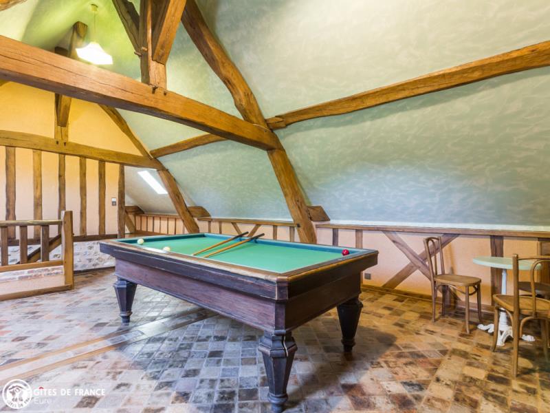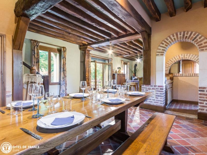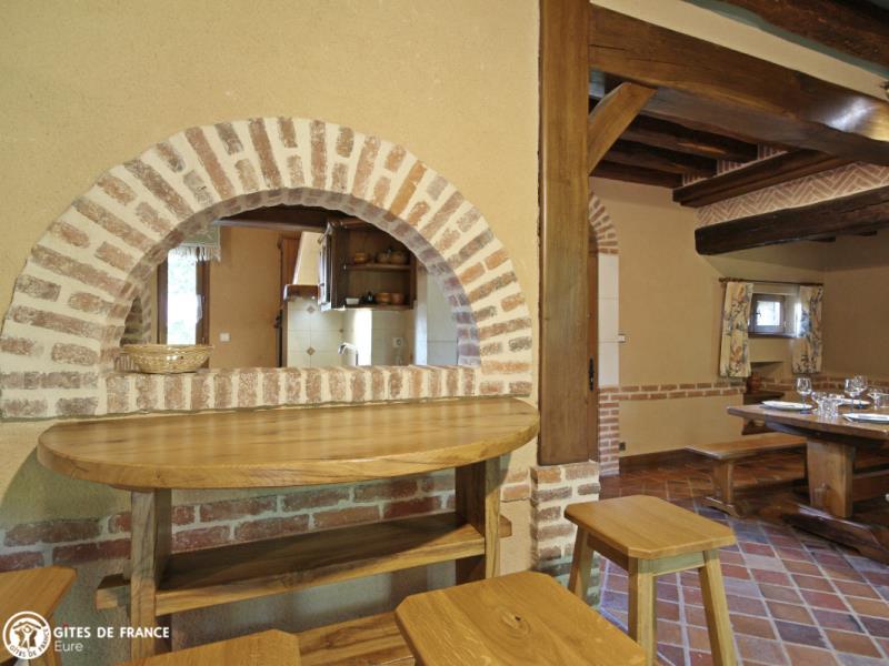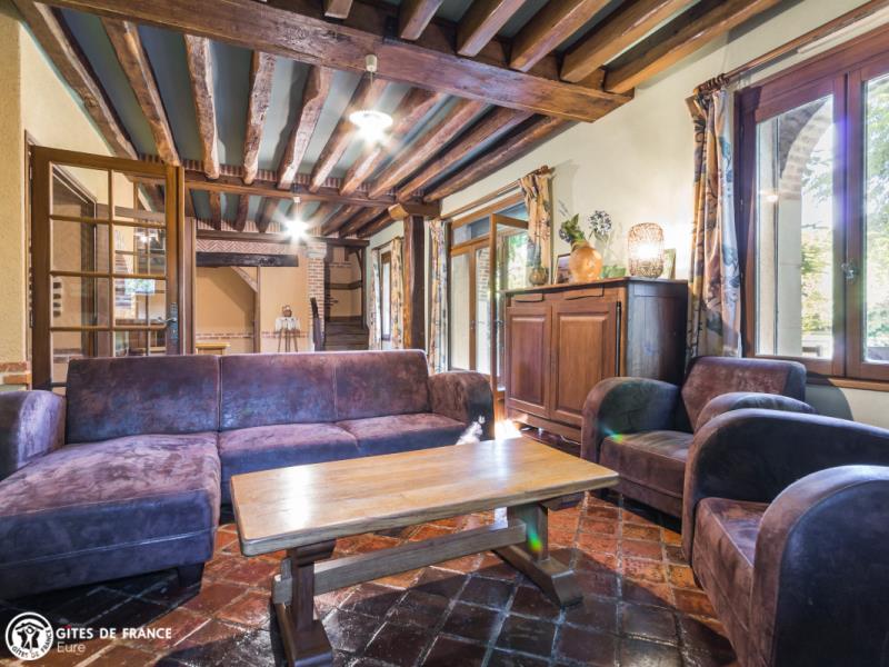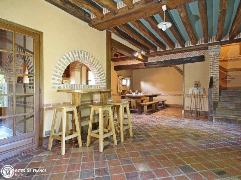 Passez les jolis piliers de briques et découvrez cette belle et spacieuse propriété qui sera peut être la vôtre le temps d'un séjour. Gérard a aménagé ce lieu au fil des années avec goût et beaucoup de soin en commençant par cette grande bâtisse dont une partie est aujourd'hui un gîte spacieux et très confortable, astucieusement aménagé pour que chacun trouve son espace. Il est entièrement indépendant, très chaleureux avec ses tomettes anciennes, ses charpente et poutres apparentes et son ambiance "maison de campagne". Un vrai plus : l'espace billard a l'étage, mais avant tout le superbe parc arboré et clos par lequel vous rejoignez le village et ses commerces. Quoi de plus charmant que d'observer le jeu des écureuils depuis la terrasse ou le salon ? Vous êtes aux portes du pays d'Ouche et ses paysages forestiers, et à deux pas d'Évreux, sa cathédrale et ses jolis bords de l'Iton.