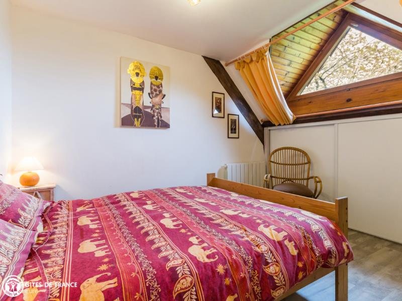 Tout près de la Vallée de l'Oison, Christine a aménagé ce gîte comme un cocon agréable. Cet appartement mansardé est chaleureux, confortable et bien équipé. Totalement indépendant grâce à son accès rien qu'à vous, vous vous sentirez directement comme chez vous. Les instants en famille seront nombreux : préparation du repas tous ensemble, soirée films et pop-corn ou jeux de société. Vous disposez aussi d’un joli jardin planté de fruitiers, où les occasions de vous relaxer et reposer ne manqueront pas. Les enfants seront aux premières loges pour observer et saluer les poules. Autour de vous, beaucoup de lieux sont à visiter comme le Moulin Amour, le Domaine du Champ de Bataille, le petit Versailles normand ou encore le Domaine d’Harcourt. La campagne toute proche offre de très belles promenades dans des chemins où surgissent de nombreuses sources. Autant d’atouts qui vous feront passer un agréable séjour au Nid de l’Oison.
