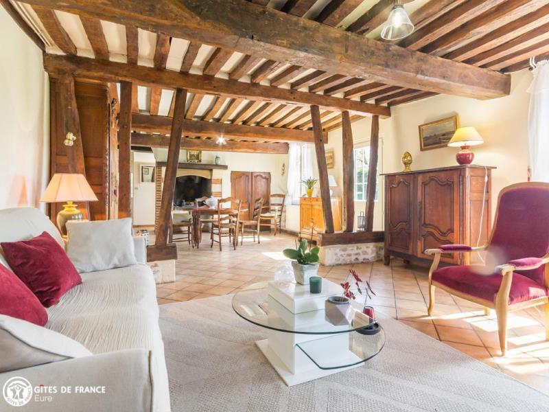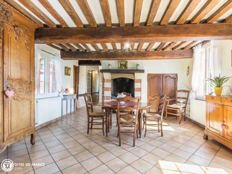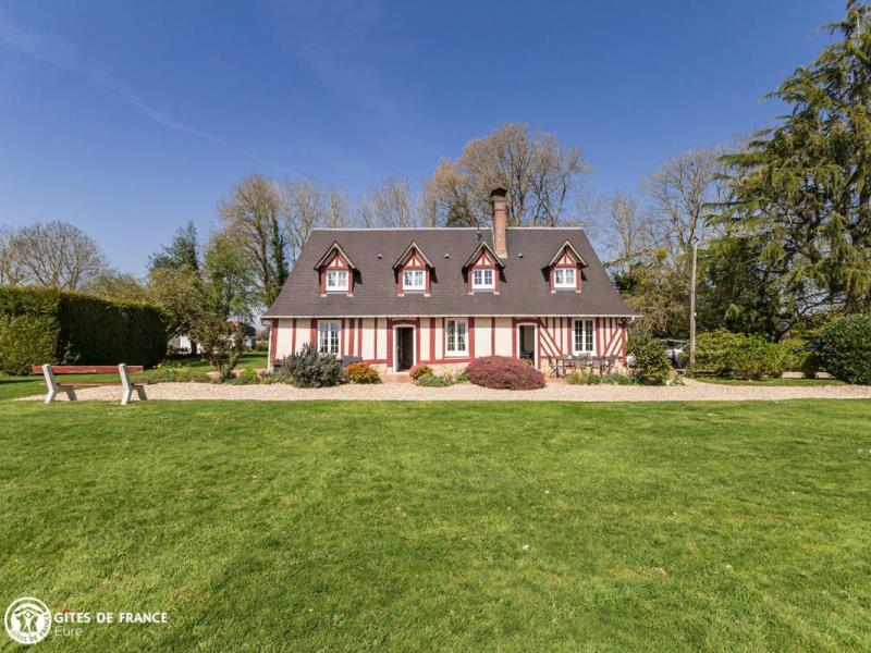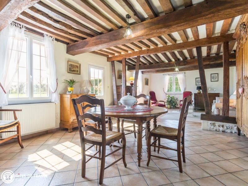 Vous serez sous le charme de cette élégante longère traditionnelle aux colombages teintés de rouge. Dans un petit coin de campagne tout aussi typique, elle vous offre un superbe jardin soigné, arboré et fleuri dès les beaux jours, l'oeuvre d'Annick. Cette maison de famille de la fin du XVIIIe, la date "1779" reste gravée, a traversé les siècles tout en conservant son caractère, élégamment mis en valeur et au goût du jour : poutres et charpente apparentes, cheminée en pierre, étage mansardé charmant, armoire normande de famille et meubles anciens côtoient un salon cocoon prêt pour vos moments de détente ou parties de jeux de société (à disposition), une cuisine élégante très bien équipée pour préparer de bons petits plats, trois jolies chambres et deux salles de bain pour plus de confort. Le grand jardin est une véritable pièce supplémentaire où vous adorerez passer de bons moments de jeu ou détente, en toute tranquillité, avec souvent le voisinage de moutons pour parfaire le paysage.