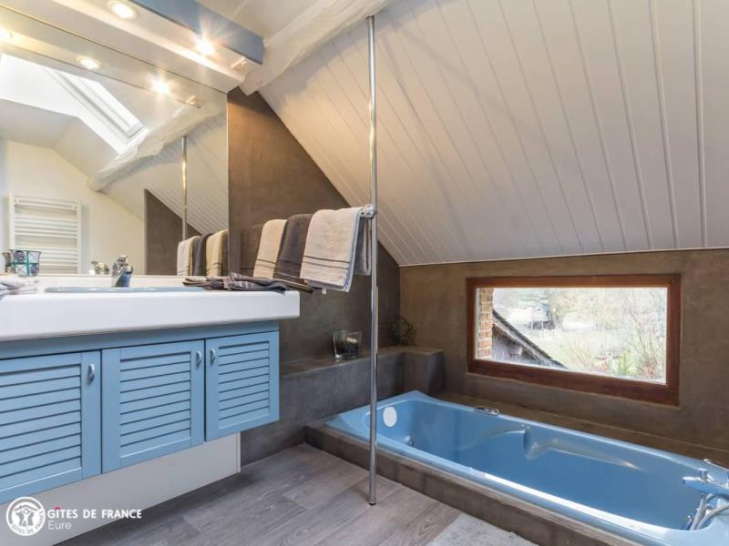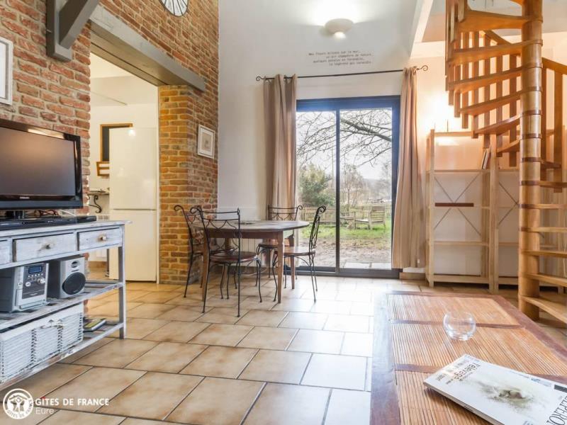 Cet adorable petit gîte séduira les amoureux de nature : en bord de l'Andelle, Pauline et Alexandre l'ont aménagé dans une partie de leur moulin, entièrement rénové. Tout en belle brique ancienne, orangée, il vous offre son jardin plein de charme avec ses rosiers généreux, qui vous inspirera peut-être pour une sieste sous le cerisier. L'intérieur est à la fois moderne, plein de caractère avec ses pans de bois et à nouveau la brique, et chaleureux : superbe cheminée avec son avaloir en acier et vue sur le jardin par la large baie vitrée. Vous êtes au bord de la forêt de Lyons, superbe hêtraie avec ses nombreux chemins pour les balades, et à deux pas de villages pittoresques incontournables comme Lyons-la-Forêt, restos, antiquaires et magasins de déco sympas ou Vascoeuil : château, jardins et musée d'art contemporain. Autre point fort du lieu : les commerces sont sur place, dans le village, pas besoin de courir ! Côté animation : une guinguette juste à côté dans une brasserie très sympa.