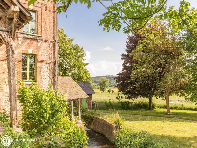 L'eau qui coule à fleur de pré, une belle et imposante roue qui tourne, des petits ponts nichés dans les prés verdoyants... vous aimerez ce superbe moulin avec son grand jardin. Dominique et Patrick l'ont restauré avec soin et tout leur coeur, en lui conservant tout son charme et son authenticité. On y admire ses meules d'origine, ses rouages, jusqu'au lit du meunier conservé dans la pièce de vie ! C'est une intense émotion, la promesse d'un séjour original, pur et chaleureux, dans une ambiance "campagne chic" pleine de charme. La maison est spacieuse et vraiment adaptée à l'accueil de votre tribu. Le village du Bec Hellouin est une petite merveille avec ses maisons à pans de bois colorés, l'abbaye et ses jardins, ses ruelles fleuries, la petite rivière et son lavoir.