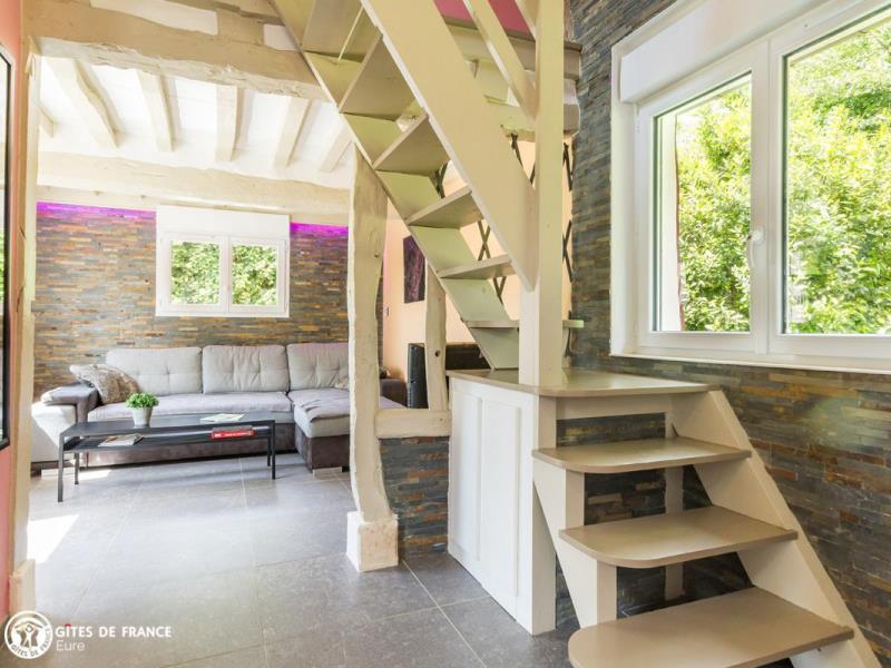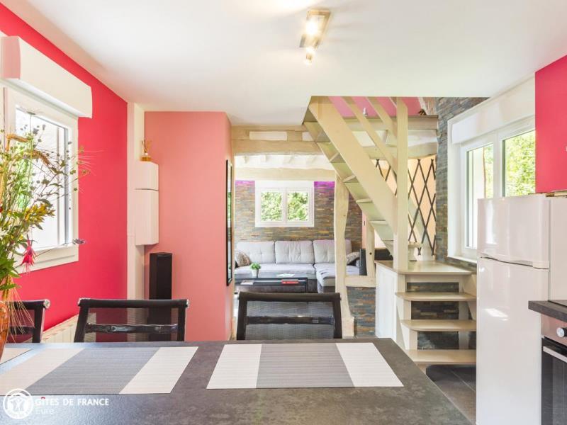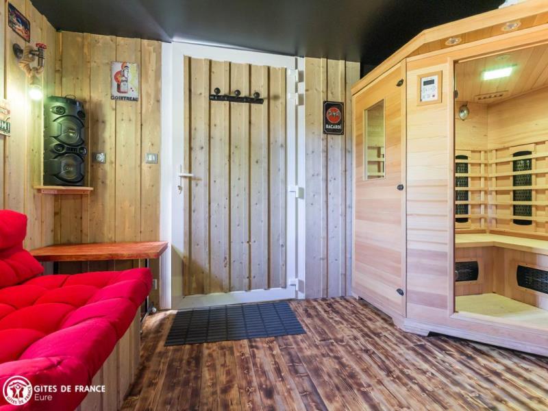 Le vrai petit gîte tel qu'on l'imagine, avec tout ce qu'on aime : voici le programme du Petit Pré ! En pleine campagne et au bout d'une impasse bordée d'arbres, vous serez sous le charme de cette petite maison aux accents bien normands avec ses colombages traditionnels et colorés. Autour, des herbages où se promènent chevaux ou moutons, des petits chemins creux sous les feuillages et des petits villages typiques et sympas comme Giverville ou Saint Georges du Vièvre où faire ses emplettes ou aller dîner. Mais une fois installés, vous n'aurez plus envie de bouger de ce petit coin de nature adorable tout à vous. Donatien a créé ici une véritable maison de vacances conviviale, ludique et dédiée à votre bien être : une maison confortable et chaleureuse, très bien équipée, plusieurs espaces détente dans le joli jardin arboré, une dépendance avec sauna, spa, pièce pour la détente ou une partie de fléchettes et jeux extérieurs : badminton, molkky, croquet.