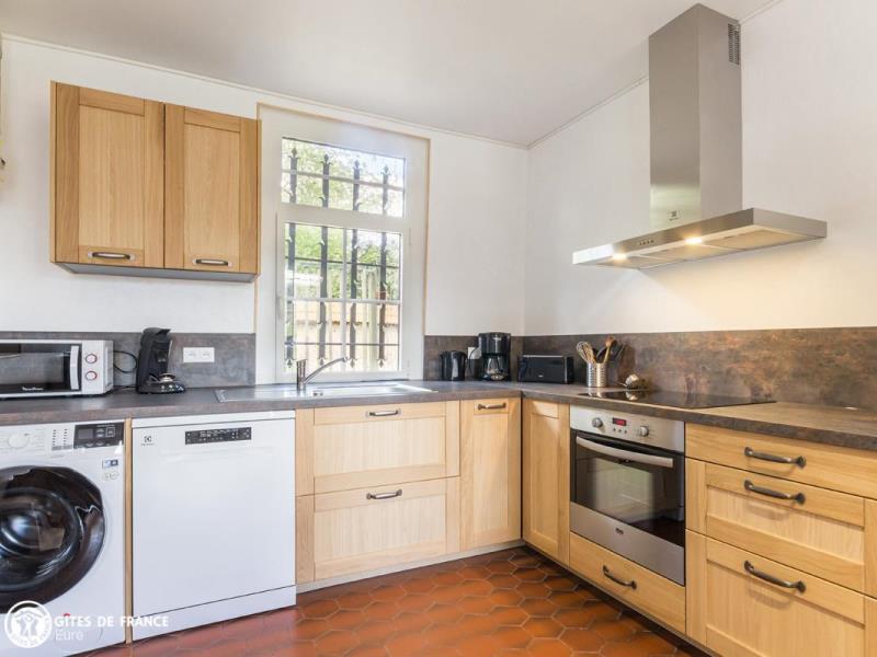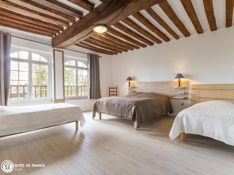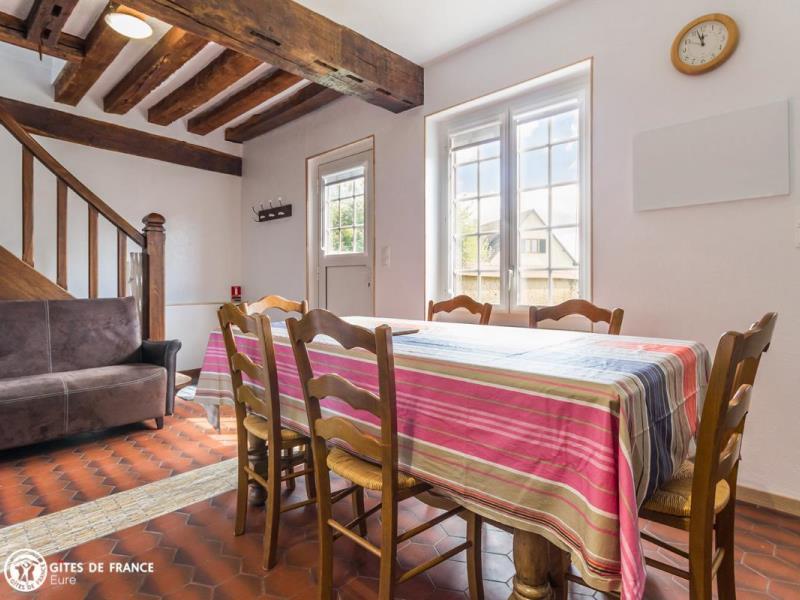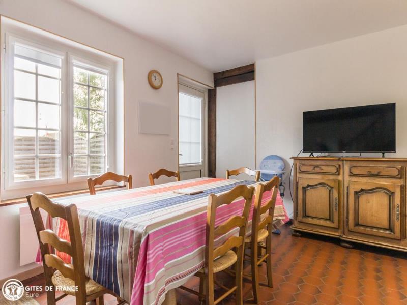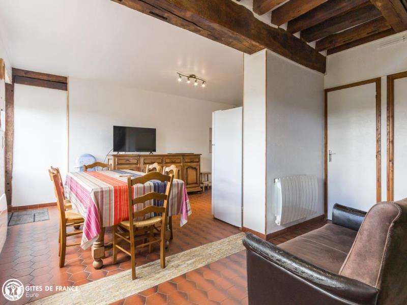 Tout près du Parc Naturel des Boucles de la Seine Normande et des larges méandres de la Seine, entre forêts de la Londe et de Montfort, se cache le paisible village de Berville-en-Roumois. En son coeur, l'ancien presbytère, superbe bâtisse à colombages du XVIè siècle abrite un gîte sympa et convivial. Dès l'arrivée, vous serez impressionnés par cette grande maison aux poutres sculptées. L'intérieur est chaleureux et a aussi conservé une partie de son caractère comme ses portes anciennes et pans de bois intérieurs. Joliment aménagé, il sera parfait pour des vacances en famille ou entre amis avec de l'espace, deux coins salon et une cuisine qui vous inspirera de bons petits plats. Egalement deux salles d'eau et wc, bien pratiques. Côté jardin, une table pour vos repas, des transats pour une petite sieste et un terrain de pétanque. Autre atout du village, une boulangerie et un restaurant. La région est riche de belles découvertes, patrimoniales et naturelles.