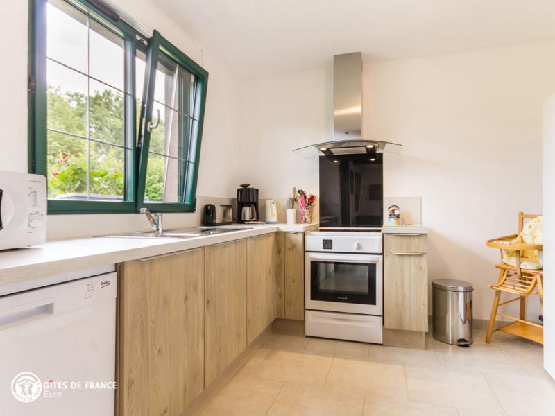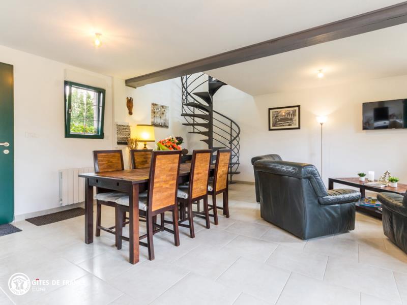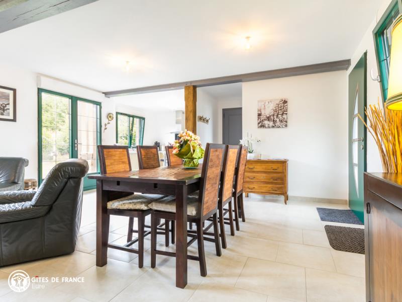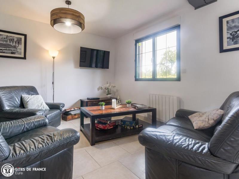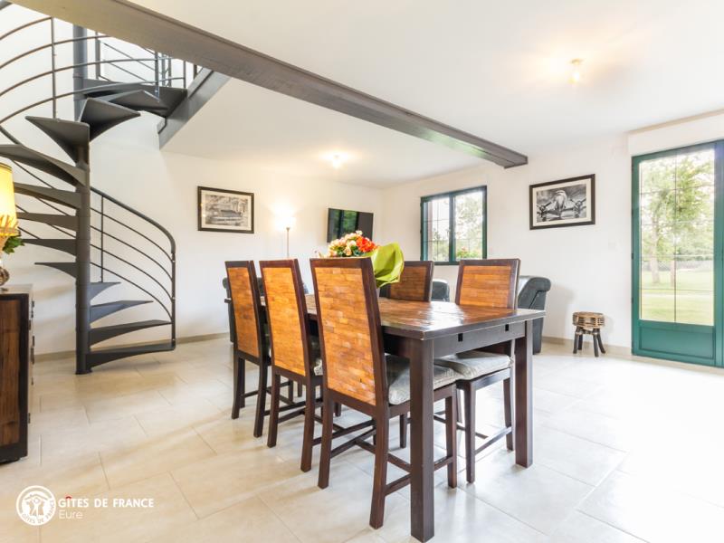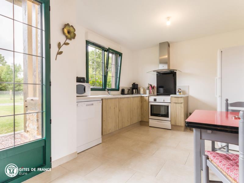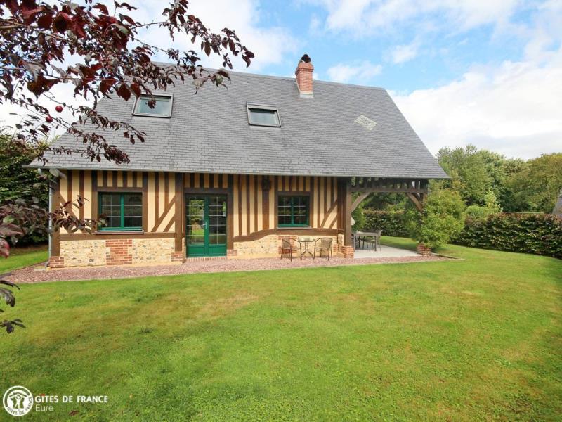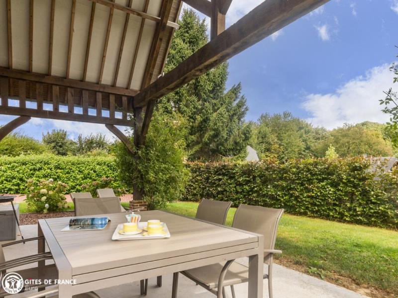 La Normandie comme on la rêve avec ses maisons à colombages, ses prés, ses pommiers et ses petits chemins cachés sous les voûtes de feuillages ; comme celui qui vous amène au Pressoir de Cy. Aux abords d'une petite ville qui vous offrira ses commerces sympathiques et tout près de la côte, ses plages et ses planches, ce gîte sera le lieu idéal pour vous poser, dans un paysage plein de charme. Mélanie a créé cette jolie maison de vacances, un ancien vrai pressoir, et en a fait un cocon chaleureux, bien décoré et très confortable. Tout est là, bien pensé, comme cette terrasse couverte sur le côté de la maison avec son mobilier de jardin et de détente pour en profiter.