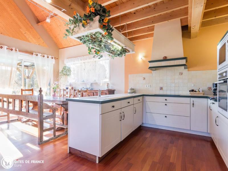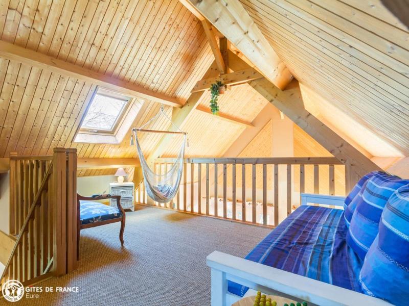 "Le Temps de vivre" reflète bien l'atmosphère de ce gîte, paisible et chaleureux, où vous passerez un vrai séjour de déconnexion. A la campagne, dans un paysage bocager bien normand, il est aussi tout proche de la Côte fleurie, entre Honfleur et Pont-Audemer, des bords de Seine et du superbe Marais Vernier : en bref, vous aurez plaisir à parcourir cette très jolie région ! De retour au gîte, vous aimerez son ambiance "maison de campagne" avec ses meubles chinés, ses différents espaces de détente, dans le salon près du poêle ou sur la mezzanine, plein de jouets, livres et jeux de société pour petits et grands, une cuisine parfaitement équipée pour vous préparer de bons petits plats et côté jardin, un bel espace où se défouler, jouer, ou se reposer. Vous apprécierez en particulier les repas sur la terrasse couverte. Christelle et Emmanuel vous emmèneront avec plaisir visiter les poules ou voir leurs ruches et pourront vous faire découvrir la cuisine végétarienne le temps d'un atelier.