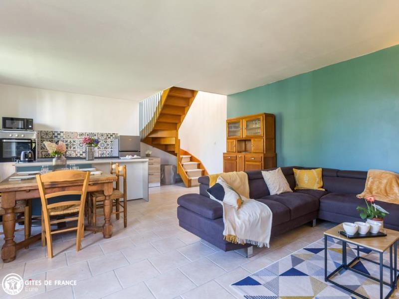 Au cœur de la vallée de l'Andelle, joli coin de Normandie du nord de l'Eure, vous découvrirez ce gîte plein de charme. La décoration y mêle meubles anciens et touches colorées, pour un séjour dans une ambiance moderne et décontractée. Côté loisirs, toute la famille y trouvera son compte: puzzle ou lecture pour les plus jeunes, pendant que les plus grands s'affrontent autour d'un tournoi de ping-pong ou de fléchettes. Aux beaux jours, chacun profitera du grand jardin pour bronzer ou au contraire se poser à l'ombre des grands arbres. A deux pas de là, les commerces et les restaurants du centre-bourg s'offrent à vous pour vos emplettes. Les plus sportifs apprécieront également la proximité avec de nombreux équipements : tennis, piscine et GR222 tous situés à moins de cinq kilomètres. Un peu plus loin, vous découvrirez Lyons-la-Forêt, Plus Beau Village de France et la forêt domaniale de Lyons, avec de belles perspectives de randonnée à la découverte de la faune et de la flore.