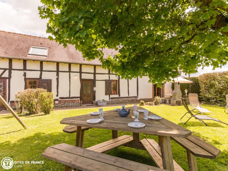Vous craquerez pour cette jolie maison de pays aux pans de bois traditionnels, en plein cœur de la superbe forêt de Conches. Elle vous promet un séjour avec tout ce qui fait le charme de la campagne : le calme, l'espace, les paysages bucoliques entre herbages et forêt, et les animaux : sur place, vous pourrez rendre visite aux chevaux (accueil équestre possible), aux chèvres et à la basse-cour de la maison. Le jardin, rien que pour vous, est clos ; Joëlle et Albin ont pensé à tout, entre les transats, les deux coins repas selon le moment de la journée, et les jeux, portique et badminton. Le gîte est très actuel en termes de confort et de déco et vraiment agréable à vivre, notamment le salon avec la jolie cheminée qui ouvre sur le jardin. Vous êtes à pied d'œuvre pour partir vous balader sur les petits chemins tout autour : vraiment relaxant ! Côté commerces, le petit bourg du Fidelaire vous fournira l'essentiel ; Conches-en-Ouche, charmante petite ville, prendra le relais.