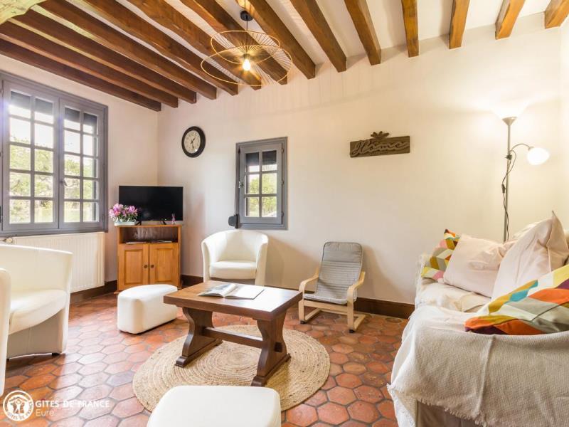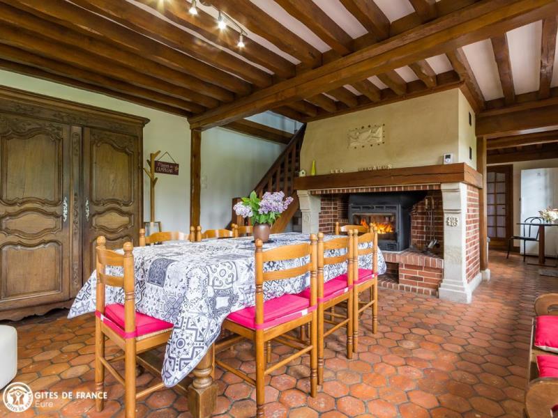 Cette authentique longère à pans de bois au caractère bien normand vous accueille pour un séjour de détente ou de découverte de cette belle région. L'arrivée par les petites routes de campagne alentour vous donneront le ton de ce paysage typique entre haies, herbages, vergers de pommiers et jolis petits villages. Anne-Marie et Jean-Pierre l'ont aménagée en une maison de vacances vraiment sympa et conviviale en mettant en valeur son caractère, comme la cheminée ou les tomettes anciennes, en y intégrant tout le confort attendu aujourd'hui. Le jardin est un véritable atout avec plein de jeux pour s'amuser, quilles, croquet, badminton, jokari, ..., tout le mobilier voulu pour vos repas en plein air ou une petite sieste et de l'espace pour se dégourdir les jambes. Tout autour, les champs, avec d'un côté l'âne Tudor et le cheval Narcisse qui se promènent souvent sous les pommiers et de l'autre les vaches. La région du Lieuvin est attachante, avec beaucoup de perles touristiques à découvrir.