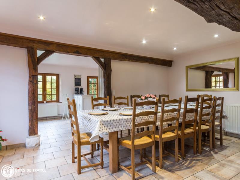 Nichée au creux de la vallée, au bord d'un petit chemin, cette grande maison à pans de bois est une invitation à la détente et au bien-être. Très spacieuse, confortable, elle bénéficie d'une décoration contemporaine mêlant avec habileté un mobilier ancien. Vous profitez d'un jardin clos de 1000 m² et d'un bel environnement avec le parc de la propriété. SPA pour 3 personnes à votre disposition (dans un bâtiment extérieur, proche du gîte). Plein de jeux de société et de jeux dans le jardin, un babyfoot, de belles balades à partir du gîte, et au bout du chemin un bel espace pour se relaxer et pourquoi pas se baigner dans la rivière.