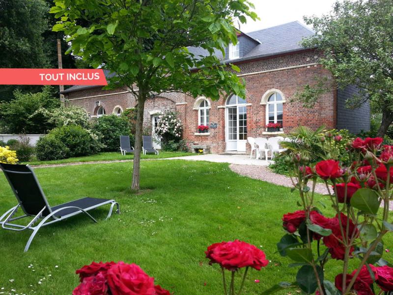 Créé dans une dépendance d'un petit château du XVIIIème, ce gîte apporte une touche "déco" très actuelle et un équipement complet. Mitoyen au gîte 779, il préserve l'intimité et offre un accès au parc du château (13000 m²). La côte fleurie est proche et facile d'accès (Honfleur, Deauville, Trouville). La région est riche en circuits de découverte. ACCES à l'herbage sous les pommeirs juste en face