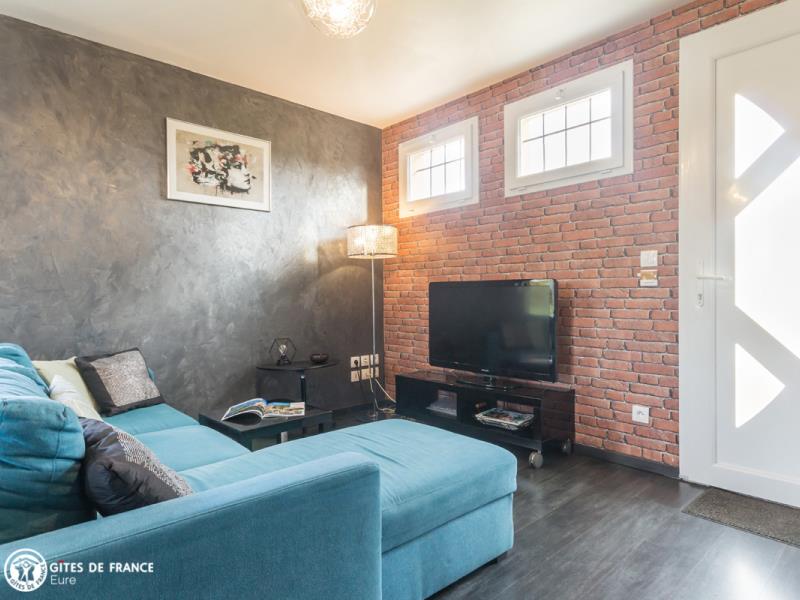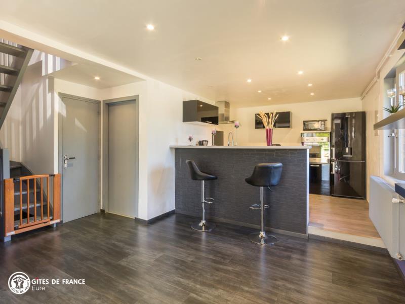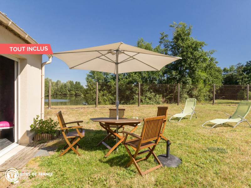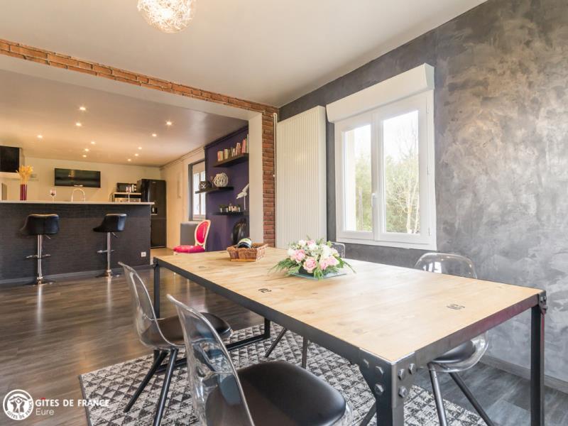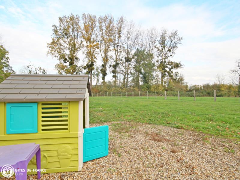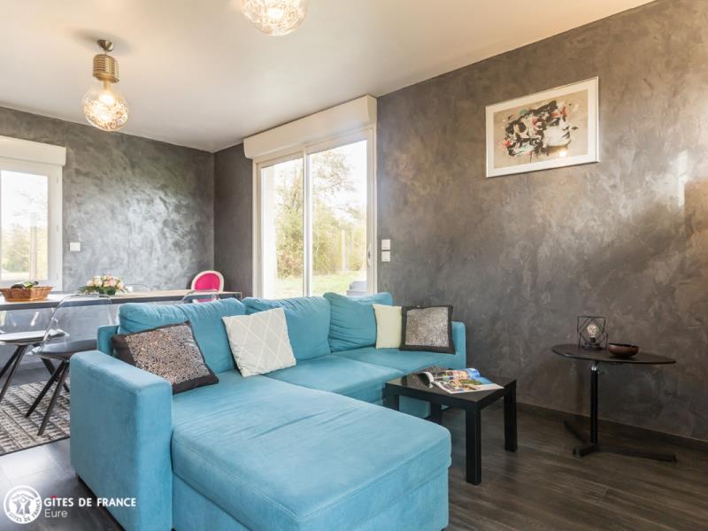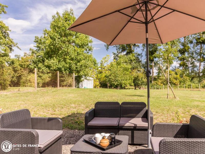 Nichée dans la jolie vallée d'Eure, pittoresque et pleine de charme avec ses paysages ouverts et vallonnés et ses petits villages traditionnels, cette maison contemporaine abrite ce sympathique petit gîte. Installez-vous confortablement dans le salon de jardin et profitez de la vue sur les herbages ou les étangs, tout autour, au calme. Le gîte est confortable, très bien équipé, spacieux et lumineux ; vous aimerez l'ambiance moderne et chaleureuse. Côté jardin, tout est là pour en profiter pleinement entre l'espace repas, le vrai salon de détente et les transats pour une petite sieste, mais également plein d'espace pour se dégourdir les jambes et quelques jeux (petit toboggan, boules de pétanque et une cabane pour les petits). Avec un peu de patience, vous aurez même le plaisir d'observer les chevreuils venir manger dans la prairie voisine ! Odile vous réserve un accueil chaleureux et vous conseillera les plus belles balades de cette belle région.
