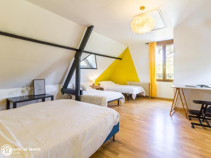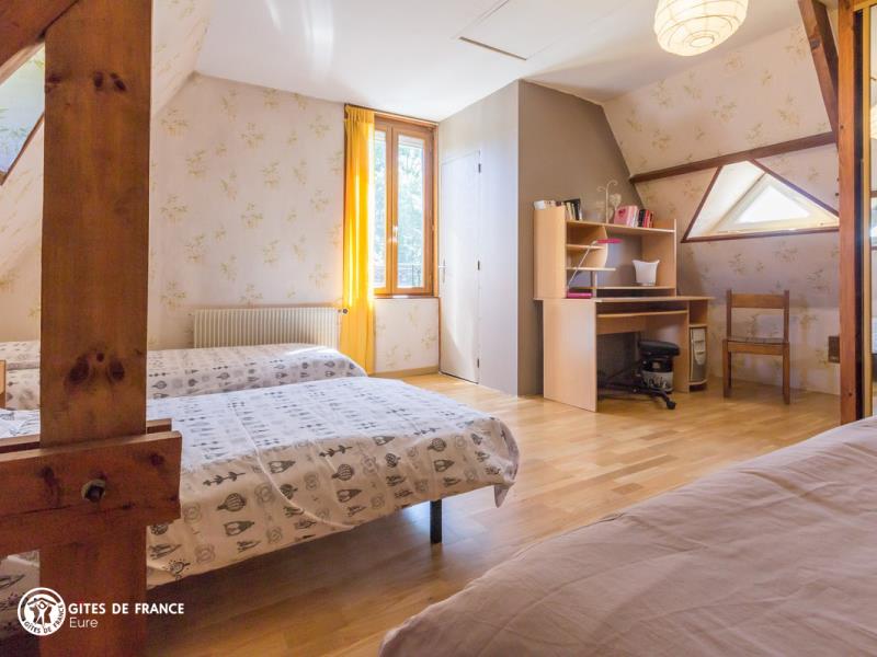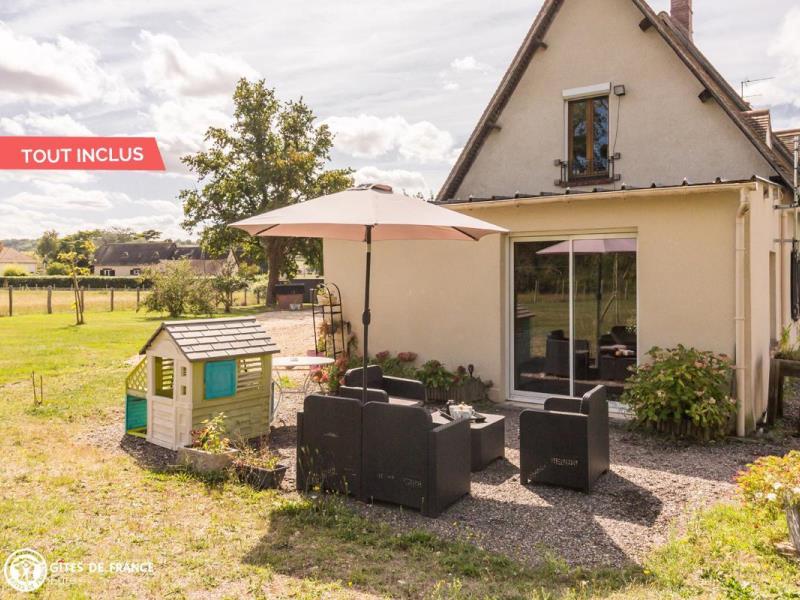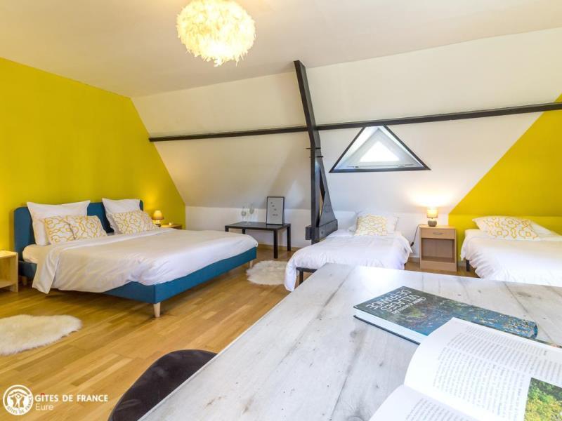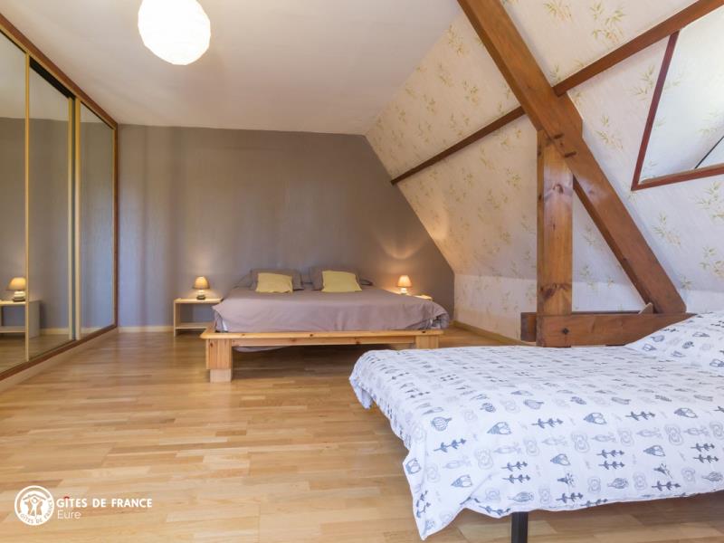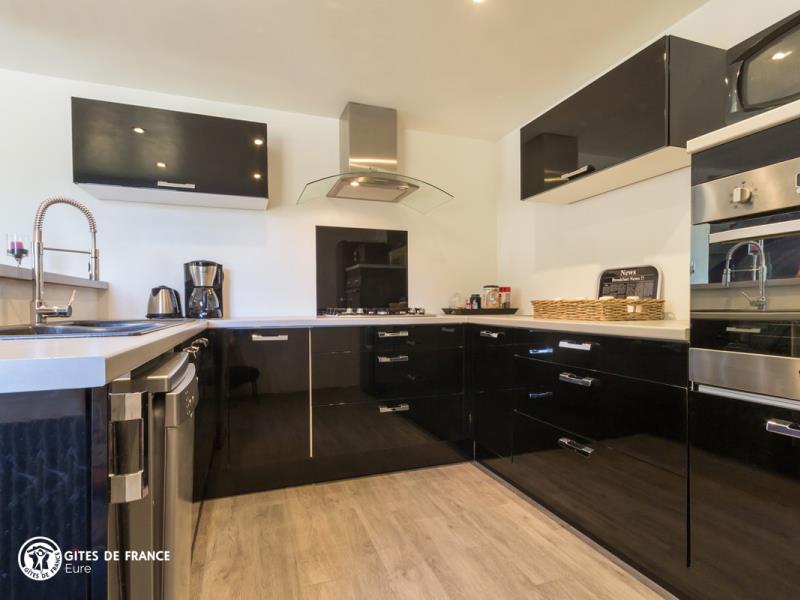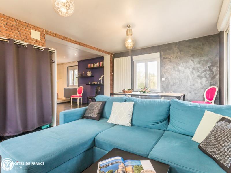 Nichée dans la jolie vallée d'Eure, pittoresque et pleine de charme avec ses paysages ouverts et vallonnés et ses petits villages traditionnels, cette maison contemporaine abrite ce sympathique petit gîte. Installez-vous confortablement dans le salon de jardin et profitez de la vue sur les herbages ou les étangs, tout autour, au calme. Le gîte est confortable, très bien équipé, spacieux et lumineux ; vous aimerez l'ambiance moderne et chaleureuse. Côté jardin, tout est là pour en profiter pleinement entre l'espace repas, le vrai salon de détente et les transats pour une petite sieste, mais également plein d'espace pour se dégourdir les jambes et quelques jeux (petit toboggan, boules de pétanque et une cabane pour les petits). Avec un peu de patience, vous aurez même le plaisir d'observer les chevreuils venir manger dans la prairie voisine ! Odile vous réserve un accueil chaleureux et vous conseillera les plus belles balades de cette belle région.