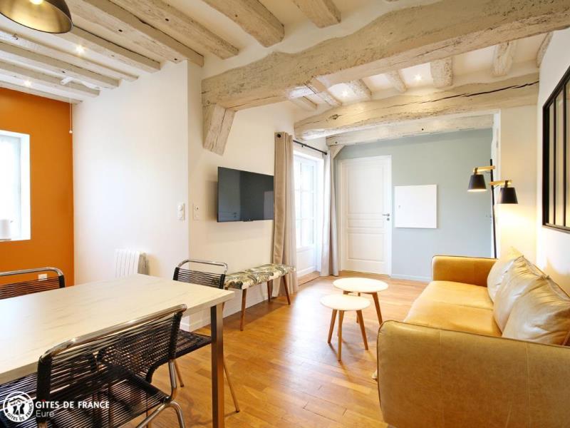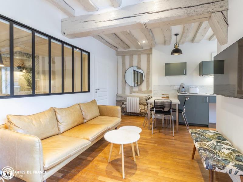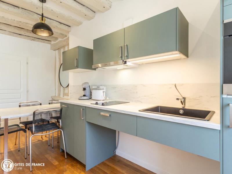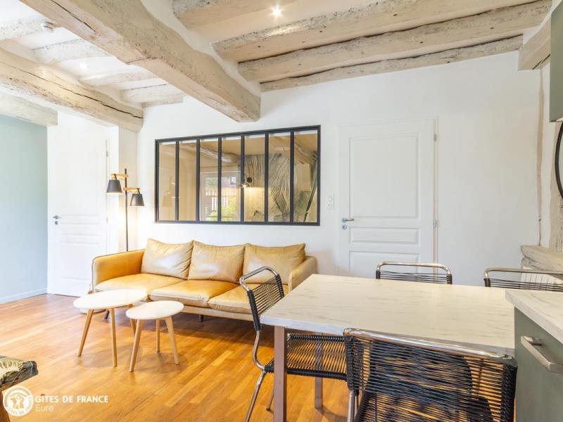 En plein cœur de Bourg Achard, cet ancien restaurant a été entièrement rénové mais n'a pas pour autant perdu sa vocation touristique ! Sébastien y a aménagé deux gîtes dont celui-ci, situé au rez-de-chaussée de cette belle bâtisse à colombages typiquement normande. Le nom "Hugo" est lui aussi un hommage à la région, en référence à la Maison Vacquerie, musée consacré à Victor Hugo et situé non loin de là. A l'intérieur, la décoration aux tons vert et camel vous plonge dans une ambiance nature et moderne. Vous séjournerez ici en plein centre-bourg, à deux pas des commerces et des restaurants. Un peu plus loin, le parc Naturel Régional des Boucles de la Seine Normande vous promet de belles découvertes avec des paysages à couper le souffle et sa belle "route des chaumières". Si les randonneurs seront ravis de sillonner le GR23 situé non loin de là, les amateurs d'un mode de vie plus urbain apprécieront la proximité avec Rouen, sa cathédrale, ses musées et son jardin des plantes.