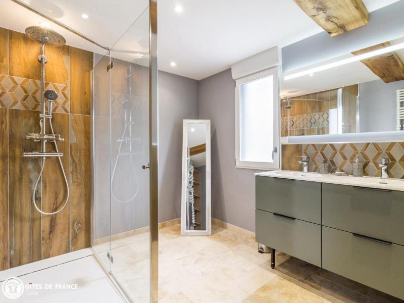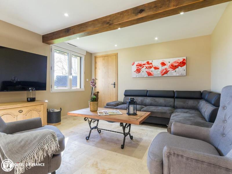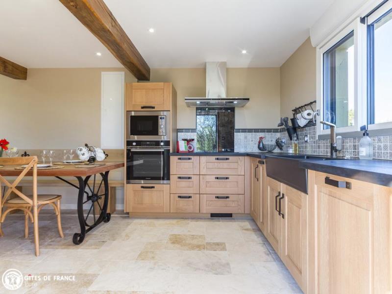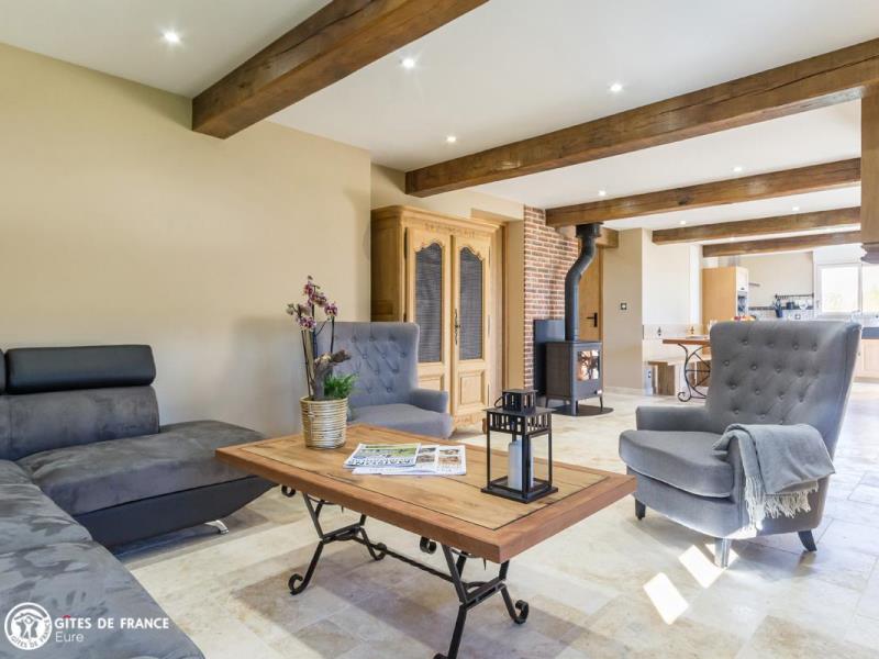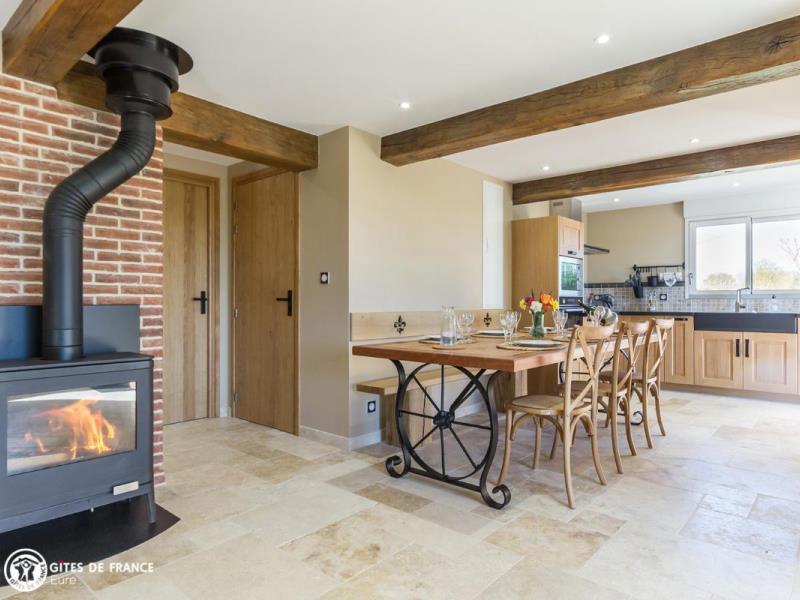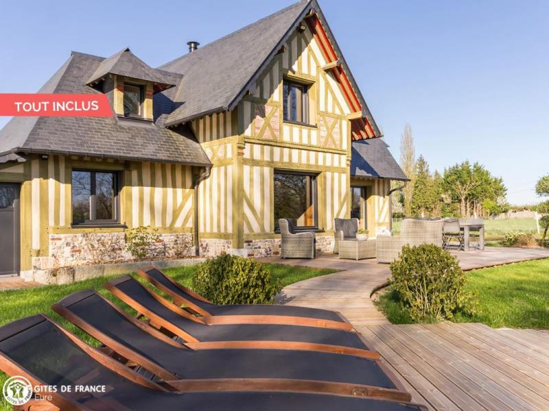 Dans le bocage normand, à l'écart d'un petit bourg sympa, les Marronniers est une élégante maison de campagne toute orientée "vacances, ressourcement et bien-être". Olivier, artisan d'art, a rénové cette bâtisse ancienne à pans de bois en lui offrant les codes des belles demeures de la côte : couleurs originales, boiseries sculptées, tuileaux, jolies lucarnes et avancée judicieuse. Sylviane a imaginé un intérieur chaleureux, inspiré de ces longères traditionnelles afin de conserver cette âme, en intégrant couleurs nature et détails tendance et surtout un grand niveau de confort. Résultat : de l'espace, de la lumière, du cocoon, un équipement au top et plein de petits coins pour tous, dehors comme dedans, où l'on aime se détendre, jouer, finir sa lecture préférée ou observer la nature : oiseaux, vaches voisines et chevreuils de passage. La vraie Normandie entre mer, campagne et patrimoine, à 25 min des célèbres plages de Deauville, Trouville et Honfleur ! A 2 pas, commerces à Epaignes.