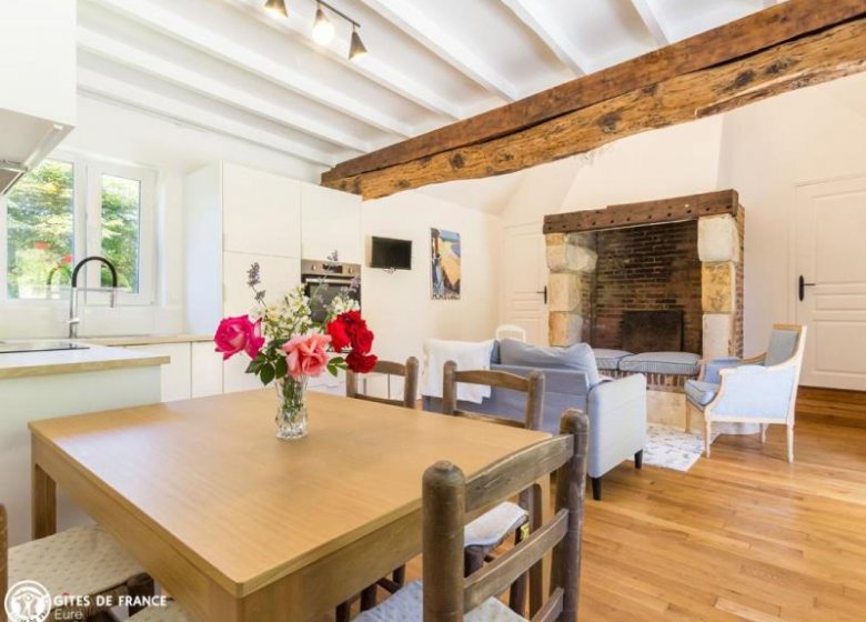 Vous serez sous le charme de ce petit coin de campagne adorable façonné par une petite rivière sympathique, le Sommaire. Dans la vallée, à l'écart du village, une vaste propriété toute en relief abrite une petite maison pleine de charme : un vrai coin de paradis pour qui cherche calme, dépaysement et ressourcement. Armelle a aménagé ce gîte avec le souci de votre confort et l'on s'y sent bien ! L'ambiance y est chaleureuse, avec son beau parquet, ses poutres et charpente apparentes, sa belle cheminée d'origine conservée juste pour la déco, ses jolis meubles anciens, mais tout à fait actuelle et dans une élégante simplicité : pièces lumineuses qui donnent toutes sur le vert, teintes claires et équipements modernes. La jolie pièce de vie ouvre sur la terrasse, cocon agréable avec espace repas et transats, puis sur le jardin dont une grande partie vous est privative. Vous êtes à 4 km de Rugles, bourg sympa le long de la Risle avec commerces et une piscine biologique de plein air.