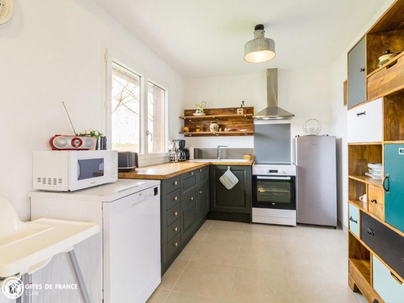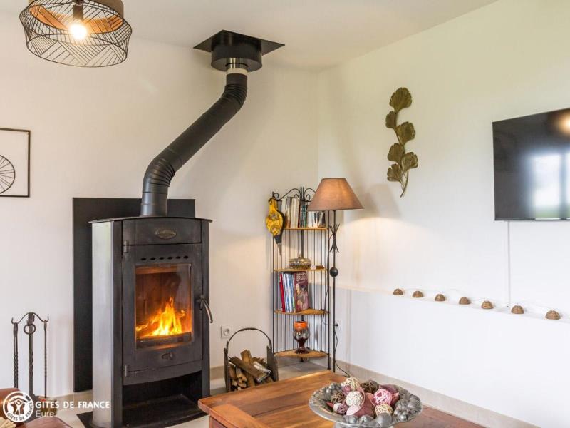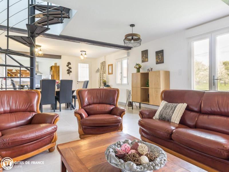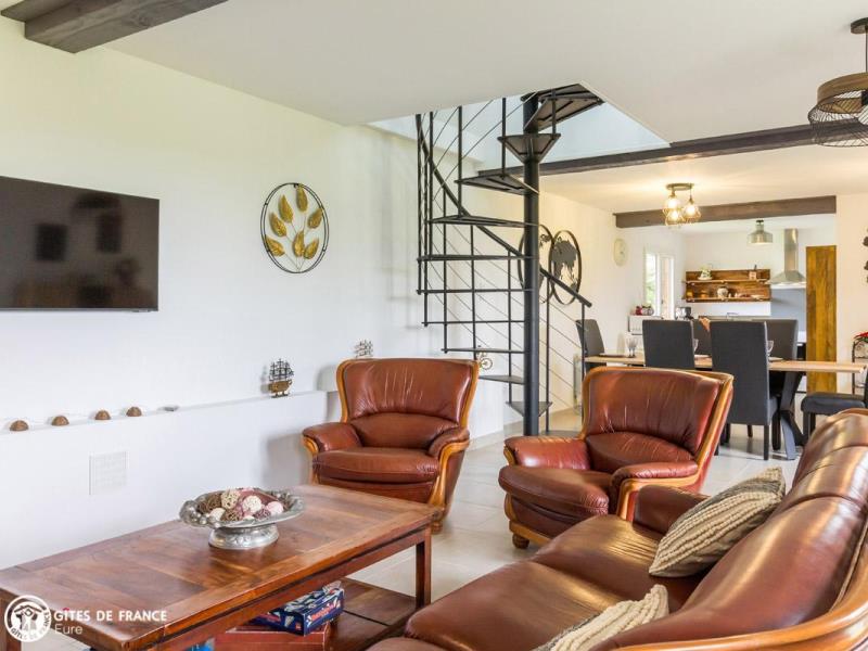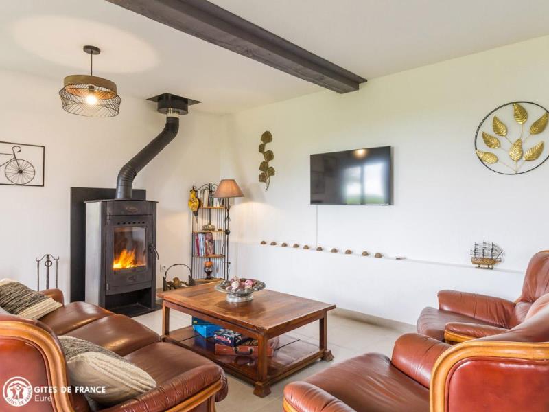 En pleine campagne normande, cette ancienne étable a été entièrement rénovée en un joli gîte, vous offrant tout le confort d'une maison de vacances des plus agréables. Avec ses touches de vert et son salon en cuir, c'est un cocon moderne et chaleureux, où chacun profitera de l'espace offert par ses beaux volumes pour se ressourcer. Pourquoi pas en lisant un livre au coin du feu ou autour d'un jeux de société ? Entre deux parties de fléchettes ou de badminton, petits et grands apprécieront également rendre visite aux moutons qui broutent l'herbe aux abords du jardin. A trois kilomètres environ, Pont Audemer s'offre à vous pour de belles promenades en bords de Risle. Vous y trouverez aussi commerces et restaurants. Tout près également, le Marais Vernier aux paysages époustouflants et la forêt de Brotonne pour vos balades.