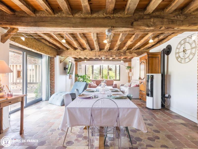 Au fil de la vallée de la Risle, Corneville est un joli village typique et paisible entre forêts et rivière, à deux pas de Pont-Audemer, petite Venise normande où il fait bon flâner. En son coeur, Ostara est une adorable maison de vacances telles qu'on les aime avec le caractère d'une maison ancienne, ses colombages et tuiles traditionnelles, ses tomettes et poutres, son poêle pour une petite flambée, sa terrasse et son jardin rien qu'à nous pour profiter des beaux jours. Cécilia l'a décorée avec goût en lui apportant les codes actuels, de la lumière et tout le confort attendu pour un séjour zen. Et c'est réussi car on s'y sent vraiment bien, prêts à déconnecter ! Vous aimerez le bel espace de la pièce de vie, chaleureuse. Côté loisirs : babyfoot, rêveries sur la méridienne, jeux au jardin, lecture ou bronzage sur les chaises longues, balades à vélo sur les petits chemins ou découverte des pépites offertes par cette superbe région du parc naturel des boucles de la Seine Normande.