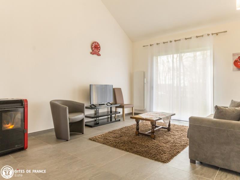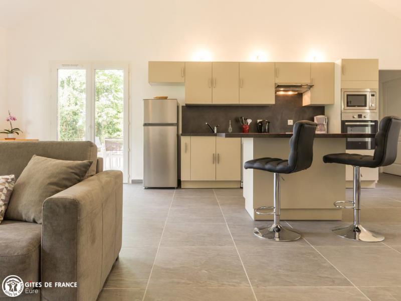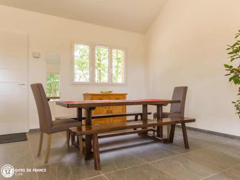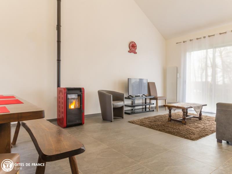 Entre bois et verdure, dans un petit village situé à deux pas de la jolie et typique petite ville de Conches-en-Ouche, vous trouverez au Sausalito une agréable et sympathique maison en bois de charme qui vous offrira un excellent séjour, au calme. Son grand jardin en partie boisé vous séduira : les petits auront tout l'espace voulu pour leurs jeux, les grands pour la détente, sous le regard des écureuils qui y ont élu domicile ! Côté intérieur, encore de l'espace avec cette belle pièce de vie à la fois moderne et chaleureuse, baignée de lumière et ouvrant sur la grande terrasse en bois, sans vis-à-vis. Denise, votre voisine, vous réserve un accueil des plus chaleureux. Pour les courses, vous trouverez tout au village, avec même un restaurant.