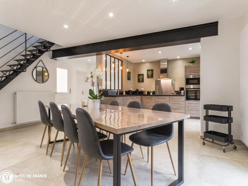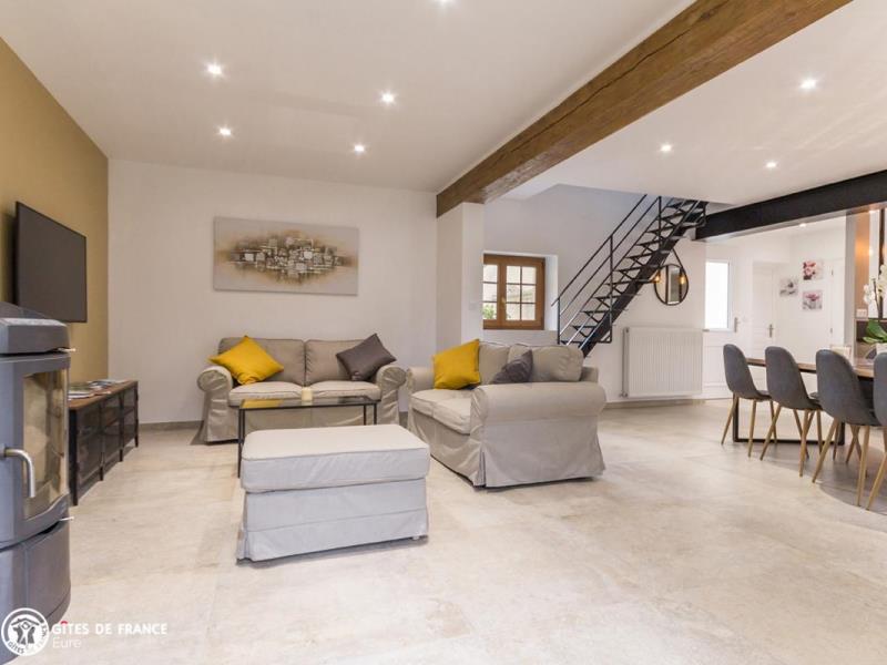 Le gîte Souvenirs d'Antan a fait peau neuve mais retrouvé l'esprit "maison de famille" qu'elle a toujours été. Thérèse, Aline ou Létycia vous y accueilleront avec plaisir et vous feront la visite : entrez et découvrez la pièce de vie, élégante, spacieuse et lumineuse, vraiment chaleureuse. L'ambiance : un esprit tendance, à la fois indus' avec une verrière atelier, un bel escalier en fer ou la table de salle-à-manger "maison", mêlé au bois et au côté cocoon du salon, dans des teintes chaudes. Les chambres sont tout aussi jolies et confortables (à noter : les literies en grande taille) et les sanitaires superbes. Un très beau travail d'équipe ! Les espaces extérieurs sont entièrement clos et rien que pour vous ; le petit jardin ouvre sur un verger où paissent parfois les moutons. Vous êtes ici au calme, dans un hameau à 2 km de Gasny qui offre tous les commerces : pourquoi ne pas y descendre à vélo ? Tout près, les superbes paysages de la vallée de Seine, Giverny, la Roche Guyon.