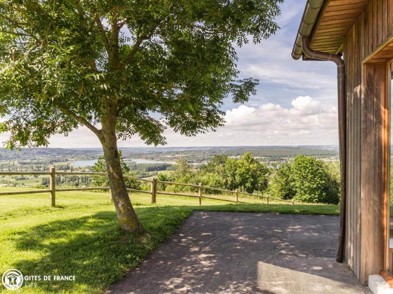 Prenez de la hauteur au gîte du Panorama, lieu de vacances sympa, moderne et écologique ! En surplomb de la Seine, il offre un point de vue panoramique vraiment exceptionnel et vous séduira par son aménagement résolument contemporain et ses pièces spacieuses. Bénéficiant de matériaux respectueux de l'environnement, cette grande bâtisse tout en bois, toute ouverte sur l'extérieur avec des vues incroyables, vous offre espace et confort. Un grand jardin tout autour pour jouer ou se reposer. Vous êtes sur un sentier de randonnée qui descend en bord de Seine à travers bois : une très belle balade ! Tout près, pourquoi pas une traversée de Seine exotique en bac ? La région est très riche en belles découvertes, avec notamment la vaste zone naturelle du Marais Vernier ou les écomusées de la Haye de Routot.