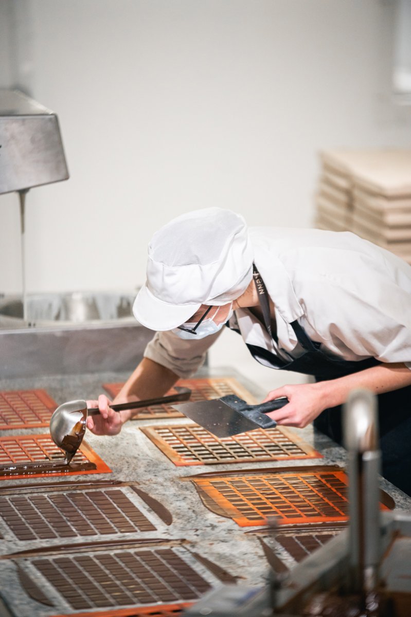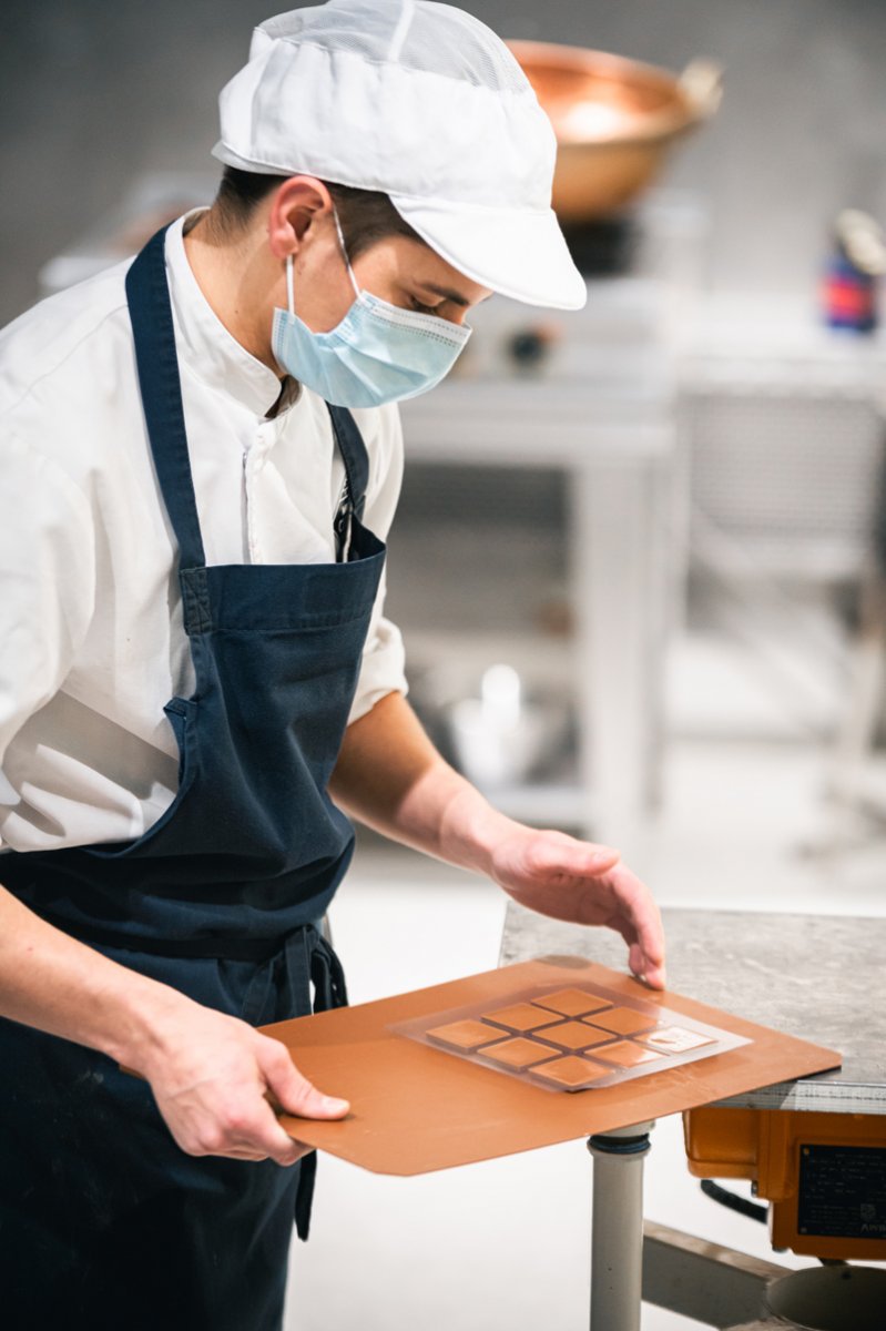 C’est sous nos yeux que ces professionnels élaborent leurs bonbons de chocolat tout en reproduisant les gestes traditionnels de leur métier, dont chacun d’entre eux nous est expliqué par Bérénice. On assiste ainsi la fabrication de sultanes, ces chocolats à base de pâte de noisettes dont la création nécessite une certaine dextérité pour un joli rendu visuel !