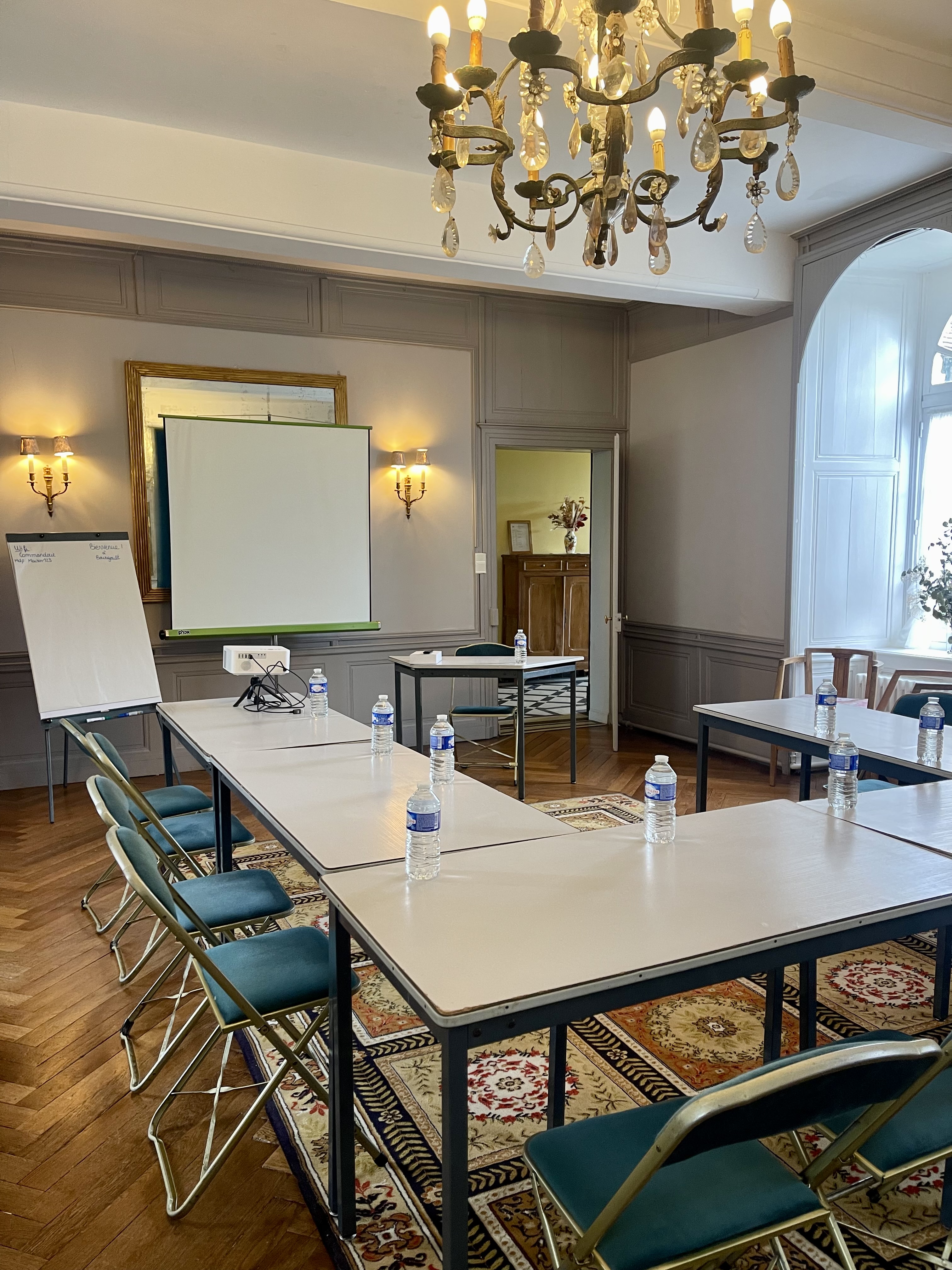 | Nom | m² | Disposition en théâtre | Disposition en U | Disposition en Cocktail | Disposition en classe | Modulable |