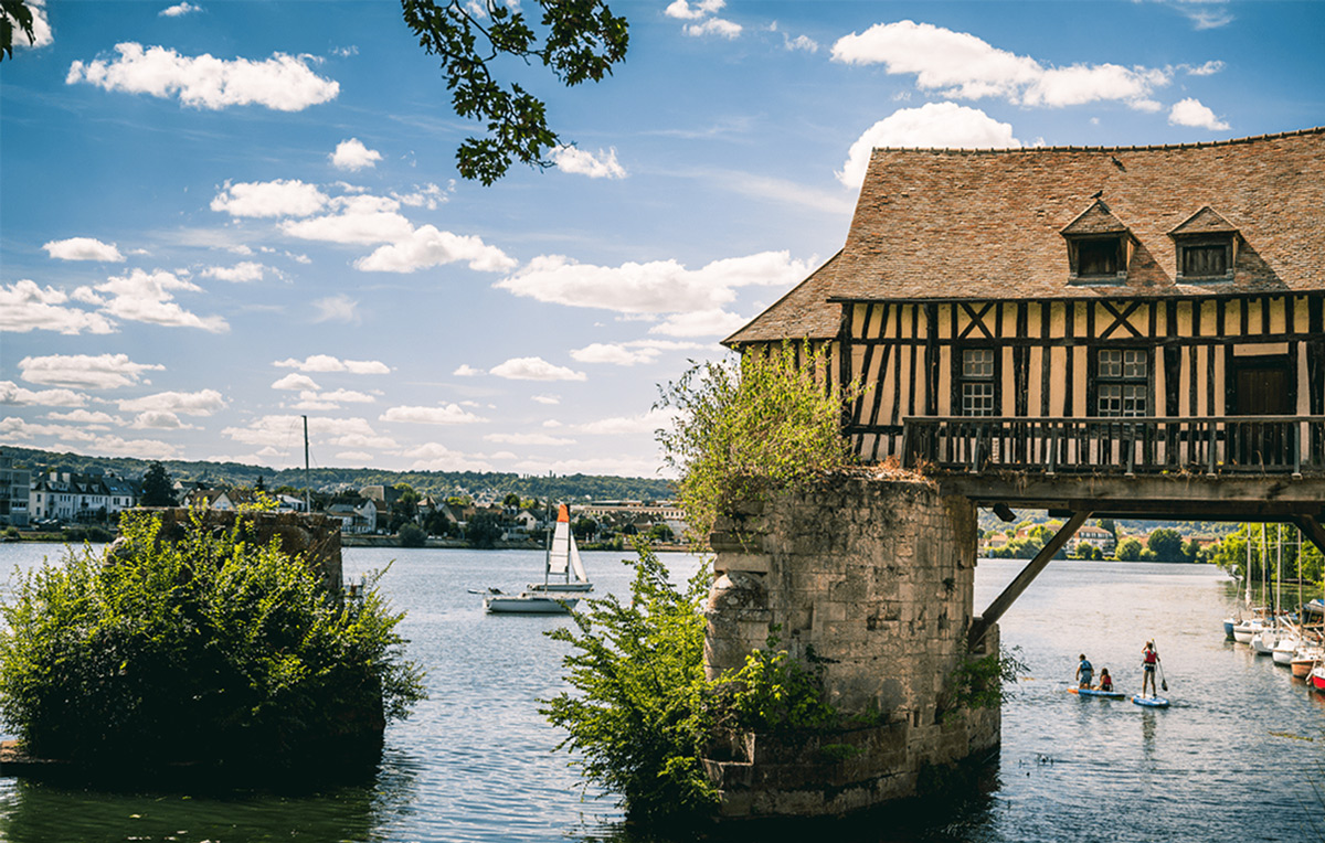 Le lendemain, cap sur Vernon ! Flânez dans le centre historique et ses rues pavées bordées de maisons à colombages, admirez le Vieux Moulin emblématique et baladez-vous sur les bords de Seine.